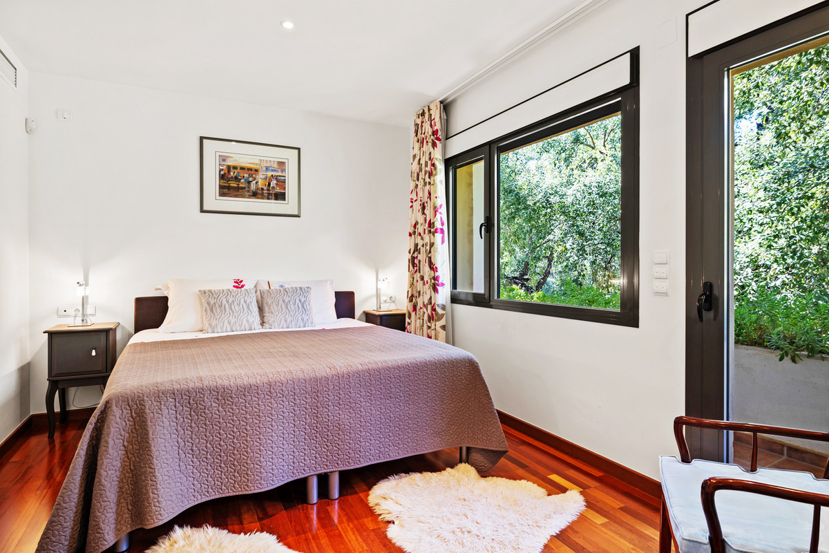 The villa has 5 bedrooms, 7 bathrooms, has a cinema room, office, gym, sauna, music room, games room, and much more. The kitchen opens to the pool and the beautiful views! The gardens are extensive, with swimming pool, jacuzzi, barbecue area, and views that can never be obstructed!