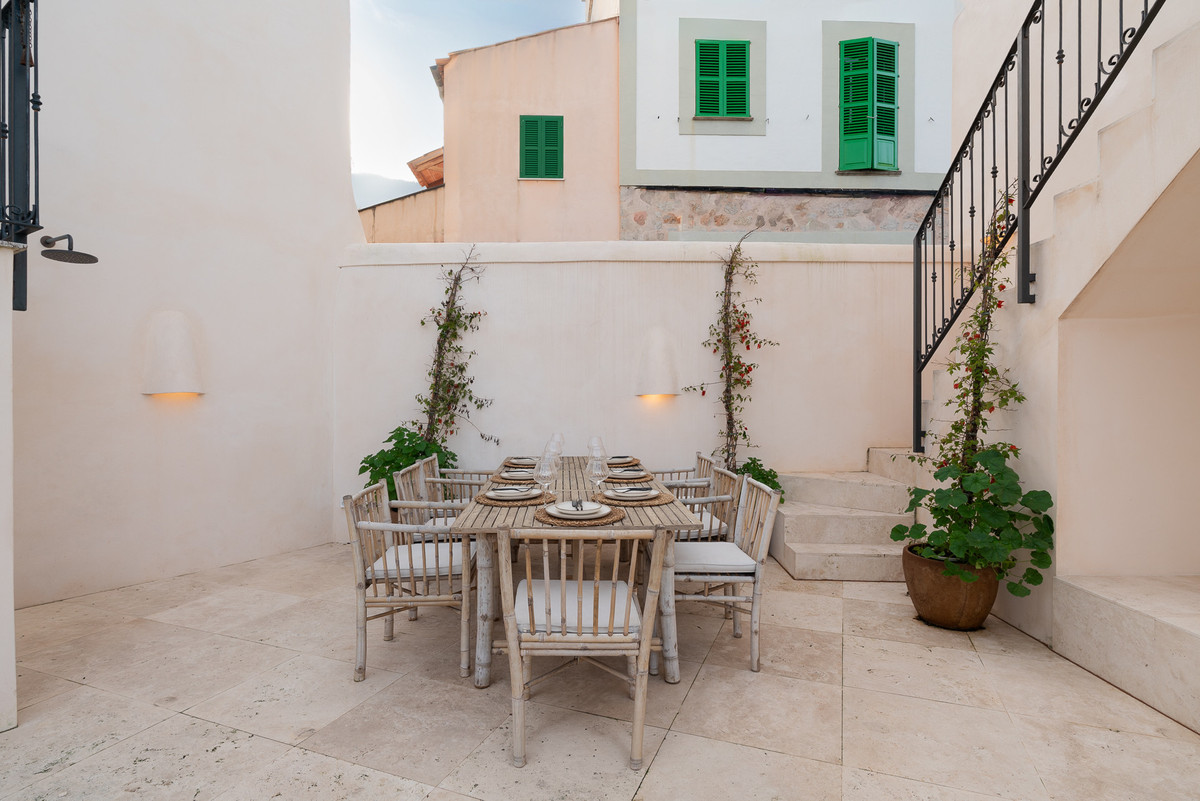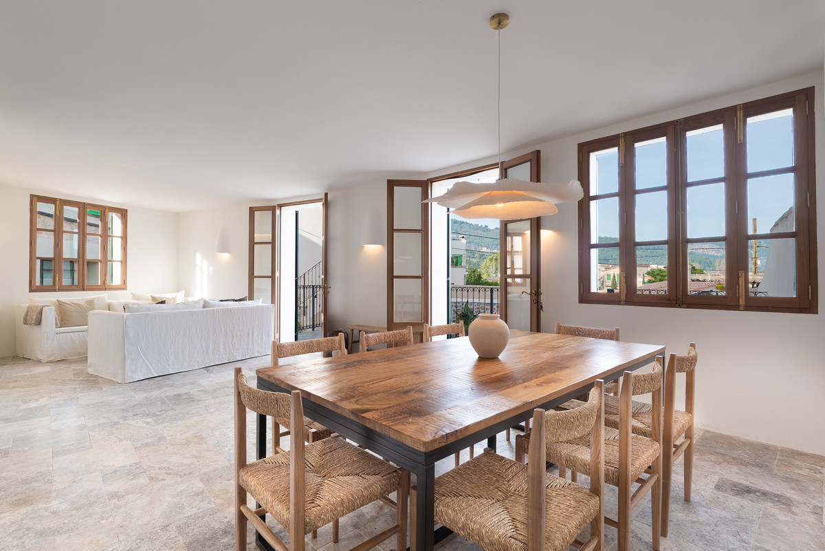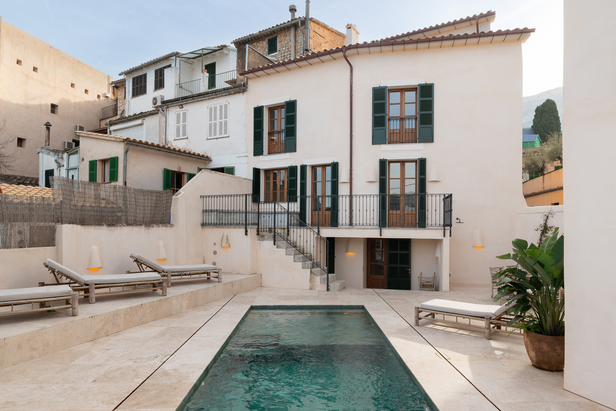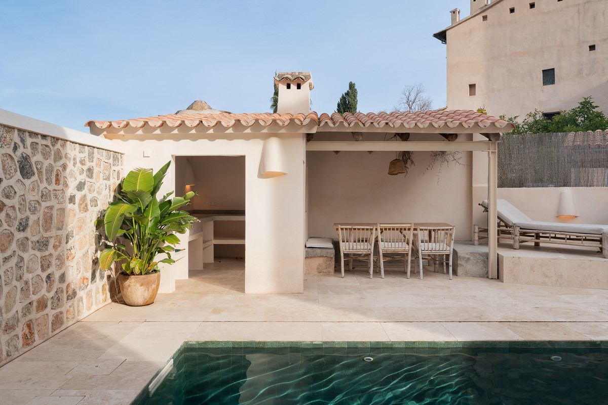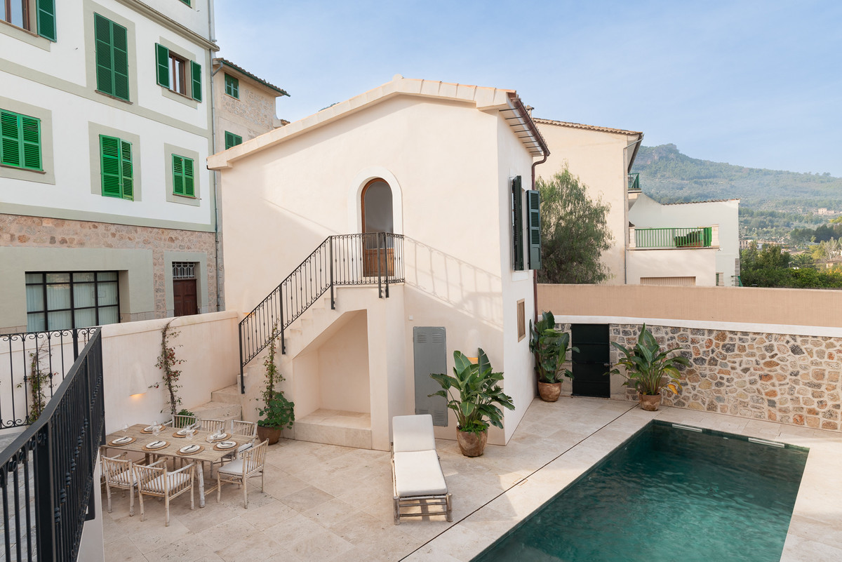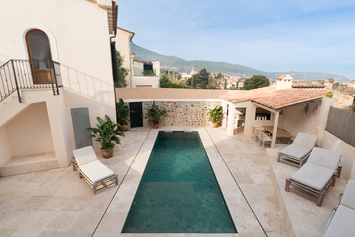 Set on a tranquil residential street within easy walking distance of the historic centre of Sóller, this outstanding property offers an elegant balance between authentic Mallorcan architecture and contemporary comfort. The home has been extensively renovated with great respect for its origins, retaining select original details while introducing high-end finishes and a refined modern aesthetic. Upon entering, you are welcomed into a generous hallway that leads into a thoughtfully designed living area. The modern open kitchen, fitted with premium appliances, flows naturally into the dining space and a comfortable lounge, all enjoying direct access to the outdoor terraces and swimming pool. This seamless connection between indoor and outdoor living creates an inviting environment for everyday living as well as social gatherings. The upper levels provide excellent accommodation, including several spacious bedrooms with en-suite bathrooms, alongside versatile additional rooms that can easily function as a second living area, home office, creative studio or further sleeping quarters, depending on individual needs. On the lower floor, practical storage and technical rooms are complemented by a large multifunctional space, ideal for a private cinema, games room or family recreation area, with direct access to the pool terrace for maximum enjoyment during the warmer months. A separate structure within the property houses a private garage and an independent guest suite with its own bathroom and open views across the surrounding landscape, offering comfort and privacy for visitors. The exterior areas are designed for relaxed Mediterranean living, featuring a swimming pool, sun terraces, landscaped greenery and a fully equipped outdoor kitchen with barbecue and covered dining area. Located in the heart of the Serra de Tramuntana, a UNESCO World Heritage Site, this property represents a rare opportunity to purchase a high-quality home in one of Mallorca's most desirable and authentic villages. Whether intended as a permanent residence or a refined holiday retreat, this home offers space, privacy and a privileged setting surrounded by nature and mountain scenery.