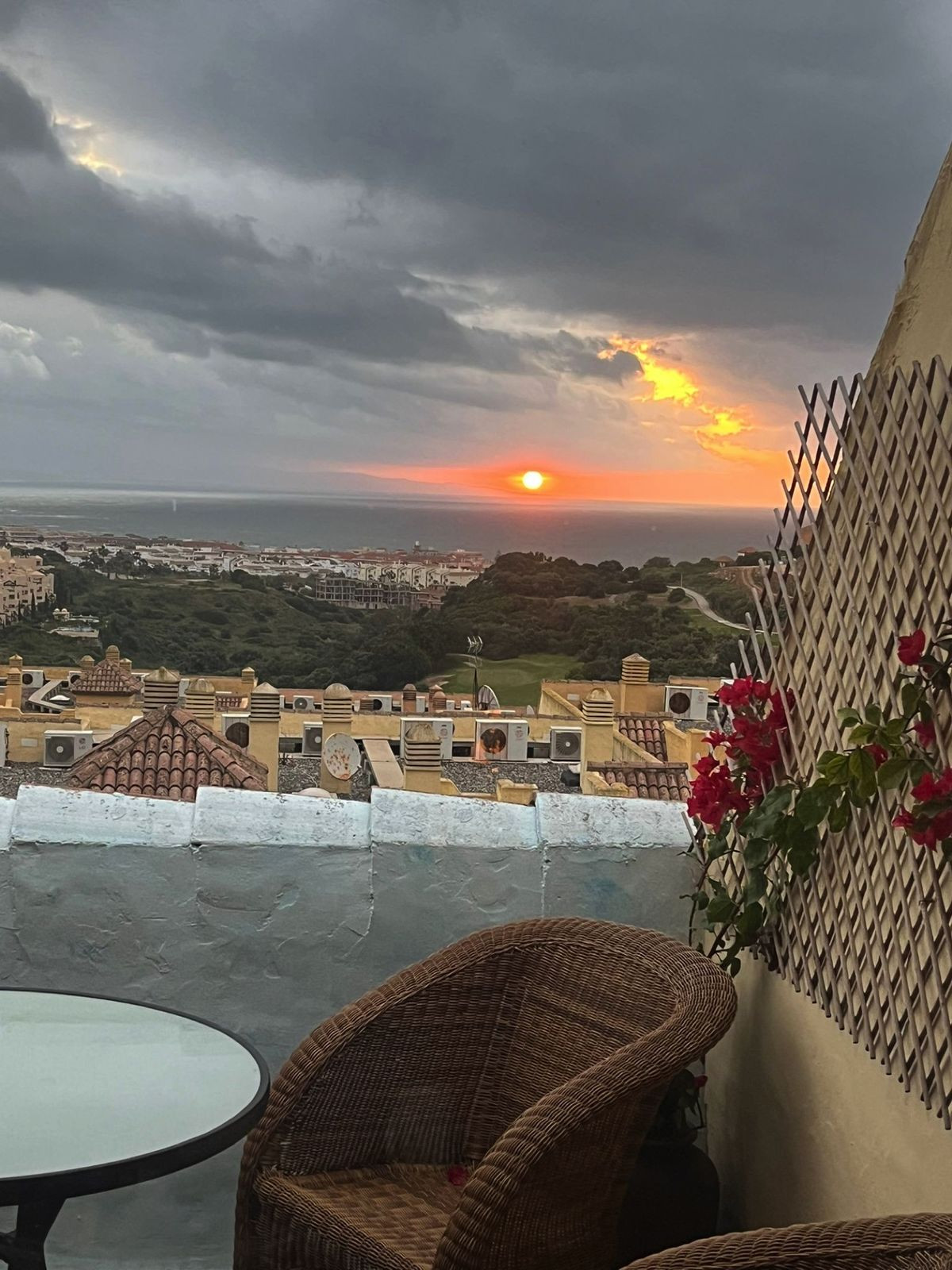 Elevate your lifestyle with this exclusive penthouse in the prestigious Duquesa Village urbanisation, a secure gated community in Manilva built between 2005 and 2007 in classic low-rise Andalusian style, renowned for its tranquil ambiance, lush green communal areas, and stunning vistas over La Duquesa Golf Course and the Mediterranean. Freshly renovated in June 2024, this south-facing property offers two spacious bedrooms with built-in wardrobes, two modern bathrooms, and a bright living room with direct access to a private terrace, plus two additional terraces capturing spectacular sea, golf, and mountain views at different times of the day – perfect for sunrise coffees or sunset gatherings. Sold fully furnished and ready to move in, it includes reversible air conditioning (hot/cold) for year-round comfort, two underground parking spaces, and a private storage room.
