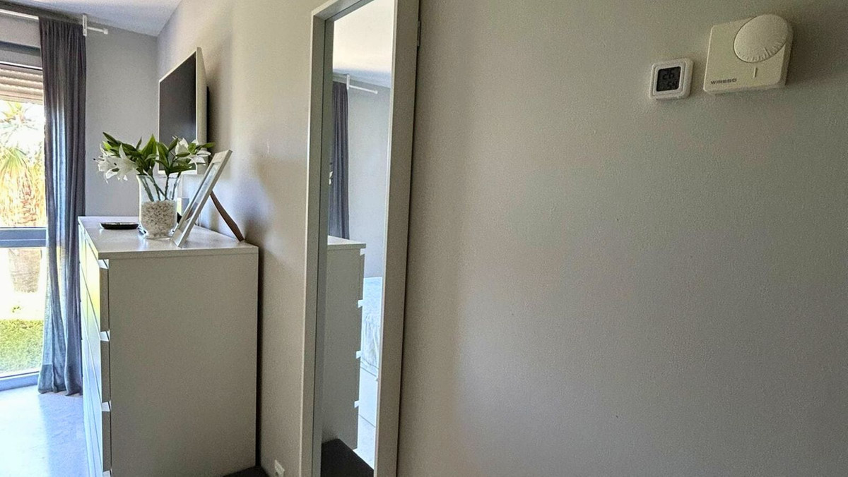 Lägenheten är utrustad med luftkonditionering, golvvärme, marmorgolv och kan köpas möblerad. Privat parkeringsplats och förråd ingår. Det inhägnade och välskötta området erbjuder både inomhus- och utomhuspooler, välskötta gemensamma ytor och hiss, vilket skapar en lugn och trygg miljö.