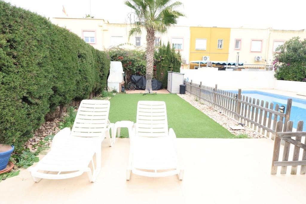 Bright bungalow for rent on the top floor, ideal for enjoying peace and quiet and spacious outdoor areas.. . Price: £1,250/month.. . Bedrooms: 3 spacious bedrooms with security bars.. . Private outdoor area:. . Large private swimming pool, fully fenced for added security.. . Sunbathing area with artificial grass and sun loungers.. . Built-in barbecue area.. . Large dining terrace with outdoor shower and garden furniture.. . Extras: Separate access via external staircase, outdoor laundry/storage area and landscaped grounds with palm trees.. . Ideal for those seeking independence and a large private leisure area.
