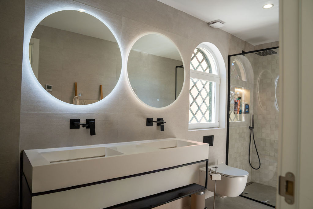 Fastigheten har ett fullt utrustat modernt kök, generösa vardagsrum med en eldstad och flera privata terrasser, både täckta och upptäckta. Perfekt för utomhusliv, underhållande och njuta av delvis hav, berg, trädgård och panoramautsikt. Ett grillområde och balkong ytterligare förbättra utomhusupplevelsen.