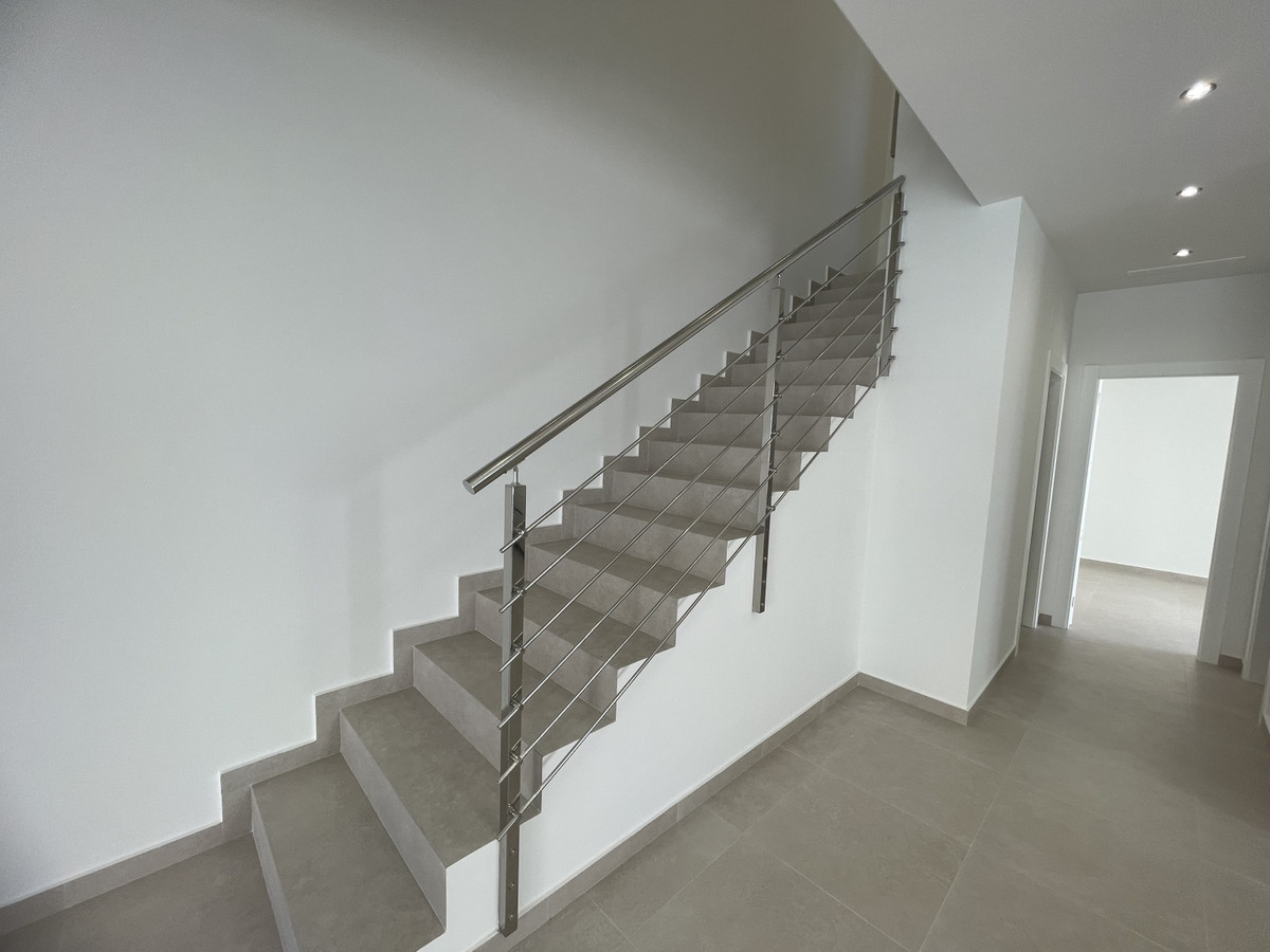 Planlösningen bygger på öppna ytor med ett ljust vardagsrum och kök för både vardag och sociala tillfällen, kompletterat med separat tvättutrymme. Tre sovrum och tre badrum ger flexibilitet för familjer, gäster eller hemarbete.