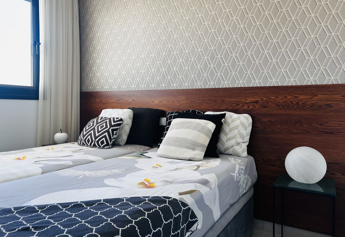 The penthouse is situated directly on the front line of the famous "Campo America" golf course and offers breathtaking panoramic views of the mountains, golf courses and the Mediterranean Sea. It is distributed over 2 floors. On the main floor, the elegant living-dining area opens into a spacious terrace where sunrise become a masterpiece. The open-plan, fully equipped kitchen with Bosch electric appliances is designed for family meals and is complemented by practical utility cabinets. Two additional bedrooms offer comfort and privacy with a stunning view on the golf course and share the guest bathroom.