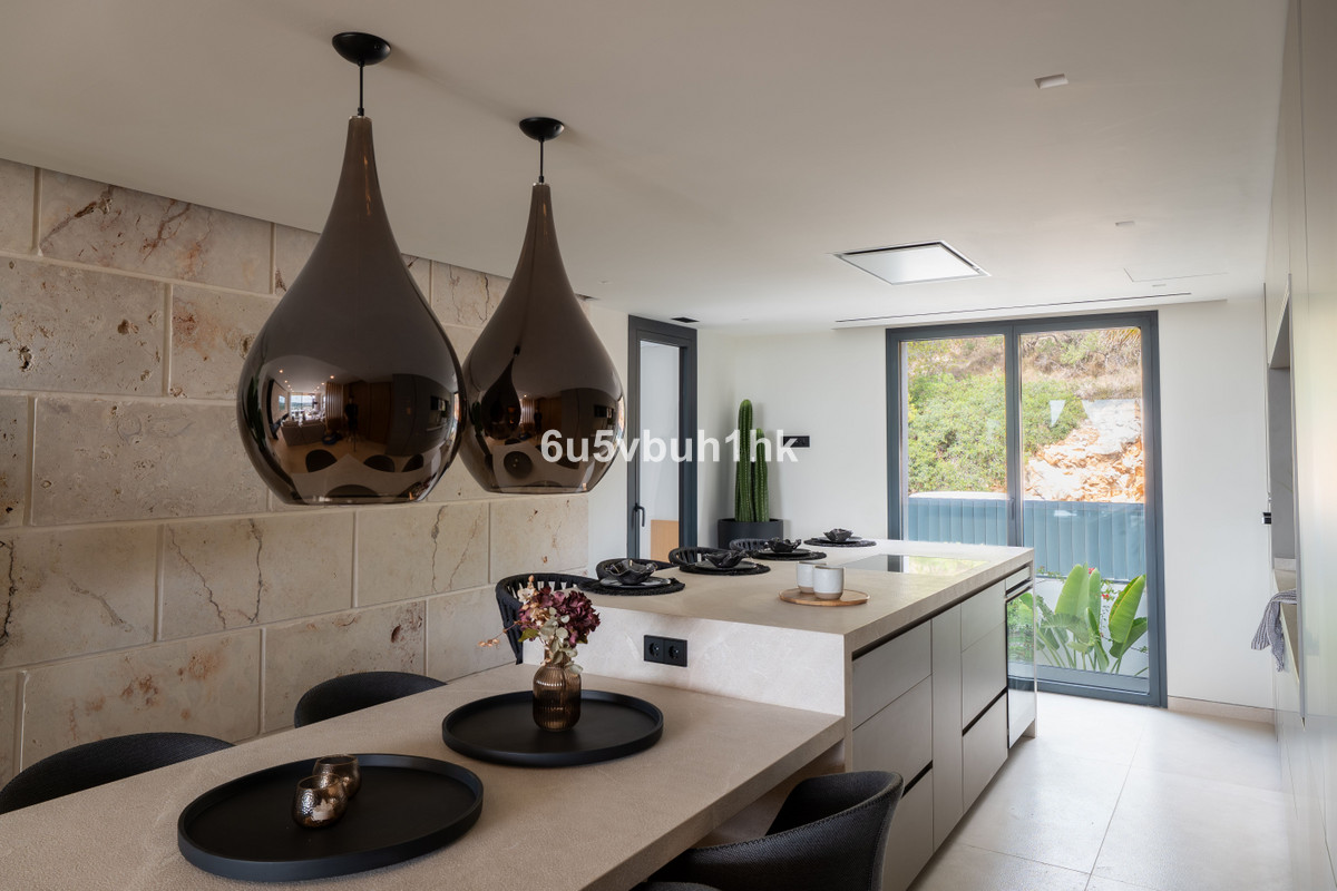 Inbäddad inom en gated community är lugn och säkerhet försäkrade. Fördjupa dig i det frodiga grönskan av noggrant skötta trädgårdar, koppla av vid infinitypoolen eller delta i avslappnade spel på paddelbanan. En privat terrass erbjuder den perfekta miljön för att njuta av den medelhavs solen och njuta av den hisnande utsikten.