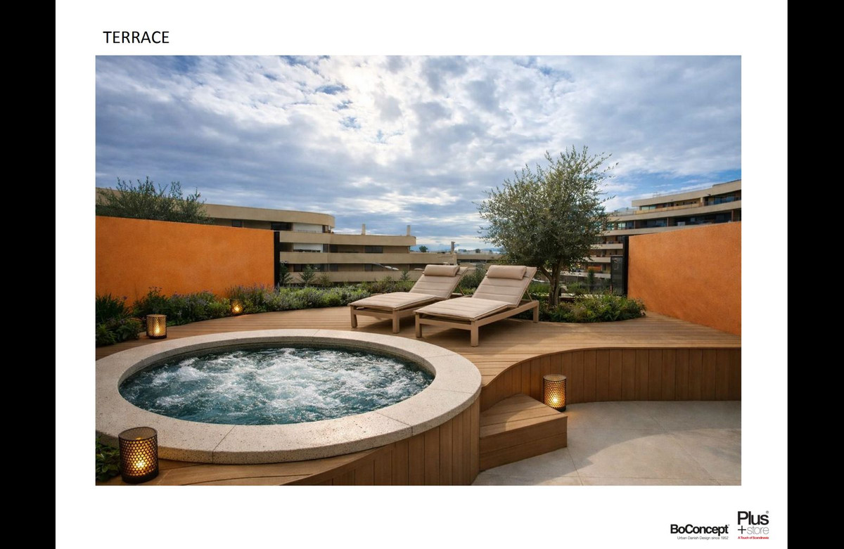 Köparen kan personligen välja möbler direkt från BoConcept, vilket säkerställer ett helt skräddarsytt, inflyttningsklart hem.