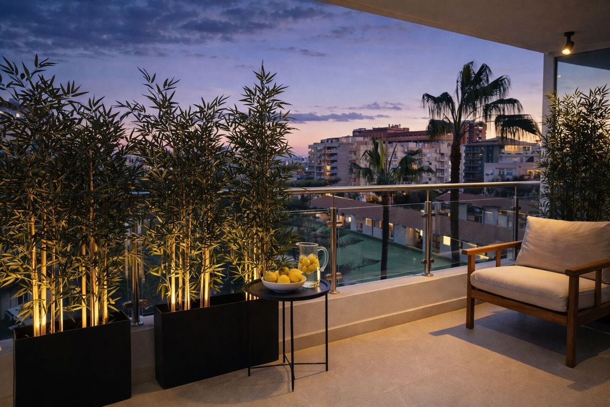 Fuengirola is located 25 km southwest of Málaga airport, between Benalmádena and Mijas Costa. It enjoys a Mediterranean climate with an average annual temperature between 18 °C and 20 °C, and plenty of sunshine all year round. With over 85,000 inhabitants, it is one of the most popular destinations on the Costa del Sol, boasting 8 km of beaches—several with Blue Flag status—a seafront promenade, and all services within easy reach. The property is surrounded by supermarkets, restaurants, public transport, and is just 450 meters from the beach, combining urban convenience with a Mediterranean lifestyle.
