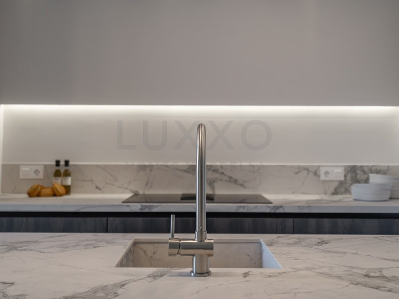 The apartment has been thoughtfully redesigned to maximise space and natural light, creating an exceptionally wide and spacious living area with a bright and open feel. The living room is stylishly finished and features a large TV screen and a cosy fireplace, making it the perfect place to relax and unwind.