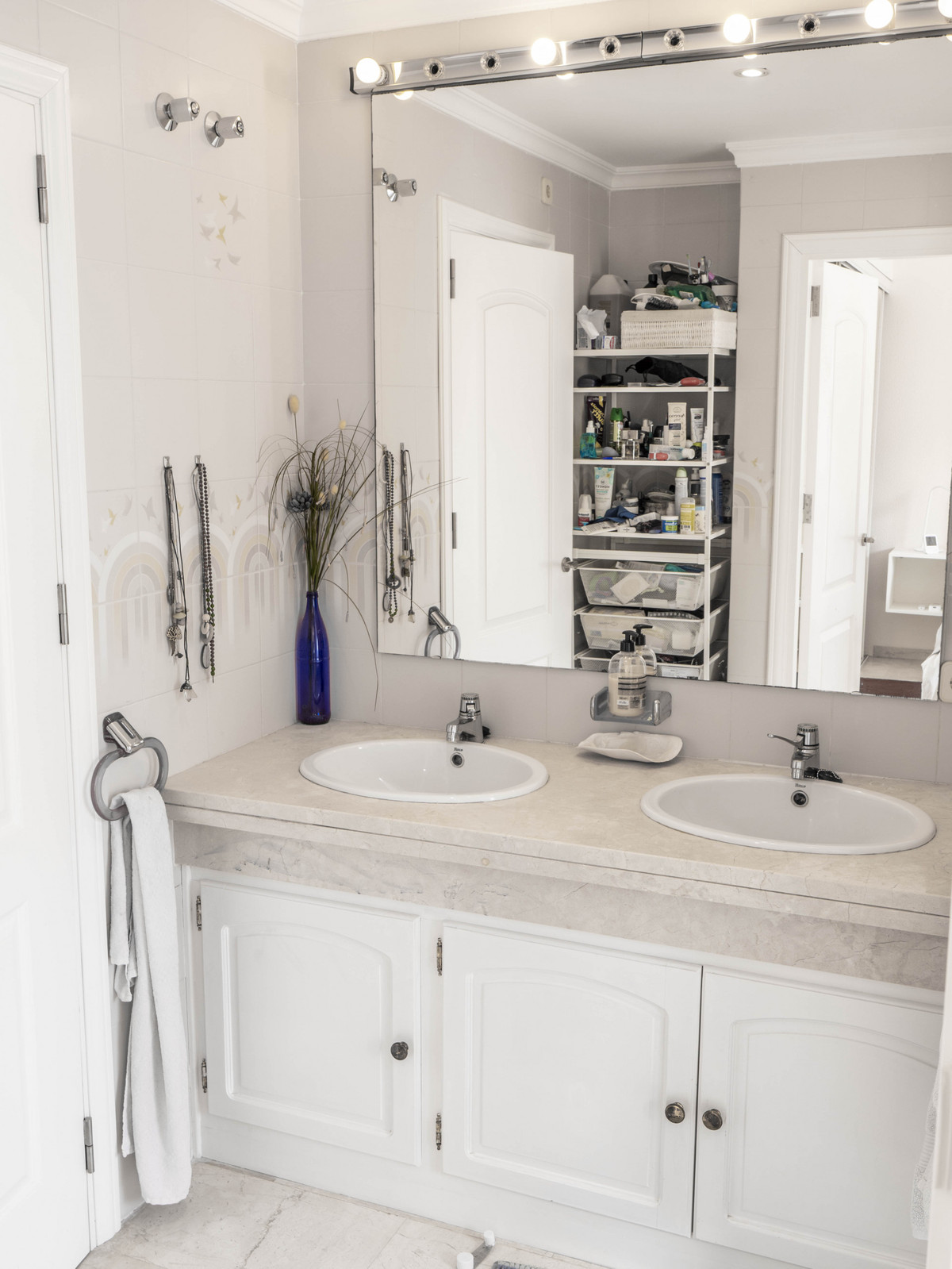 To the left side of the property, you'll find three spacious bedrooms. The master bedroom includes a large en-suite bathroom and direct access to a private terrace. The two additional bedrooms are also well-sized, both opening onto a large shared east-facing terrace—perfect for morning sun. These rooms share a nearby family bathroom. All bedrooms come equipped with full-length fitted wardrobes, and the apartment includes both high-speed internet and an alarm system already installed.