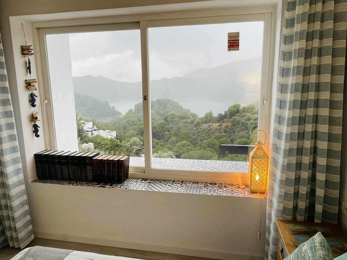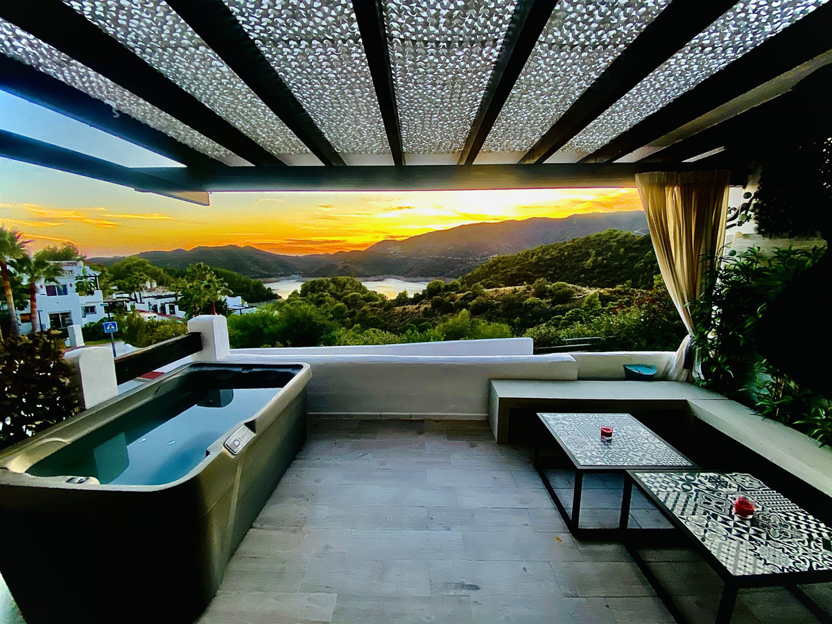 Located in the exclusive, gated Zahara de Istán community, just a few minutes from Marbella, this semi-detached home is a true luxury on the Andalusian coast. From the moment you enter the community, the tranquility and privacy offered by this enclave are immediately apparent. The home, which stands out for its unparalleled views of the lake and surrounding mountains, opens to a spacious and bright living room, an ideal space to enjoy the natural surroundings. The kitchen, open to the living room, is fully equipped and complemented by a fireplace that heats the entire floor, creating a very cozy atmosphere. On this level, there is also an elegant dining room, a bathroom, and a magnificent terrace, from which you can enjoy unforgettable sunsets. The terrace features a jacuzzi and a comfortable seating area, perfect for relaxing outdoors.
