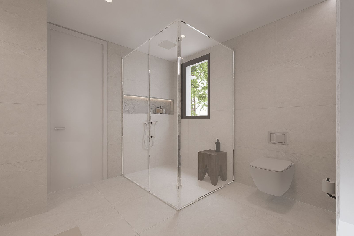 The property includes three spacious bedrooms, all en-suite, and a total of five bathrooms, ensuring comfort and privacy for all. Every room is equipped with independent air conditioning, providing year-round climate control.