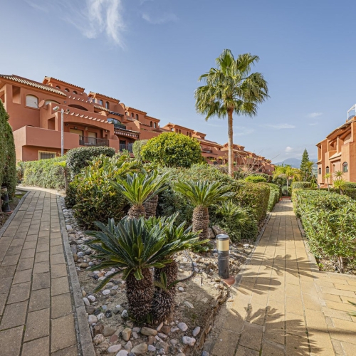 Discover this charming duplex penthouse in the heart of Estepona's historic old town, nestled on the vibrant pedestrian street. Just 50 metres from the golden sands of Playa de la Rada and a mere 30 metres from the picturesque Plaza de las Flores – Estepona's lively central square adorned with fountains, cafes, and the Provincial Art Museum (MAD) – this property offers an unbeatable location in the "Garden of the Costa del Sol." Surrounded by flower-filled cobbled streets, boutique shops, traditional tapas bars, and restaurants, it's perfect for embracing the authentic Andalusian lifestyle, with easy access to attractions like the Orchid House botanical garden and the scenic Paseo Marítimo promenade.