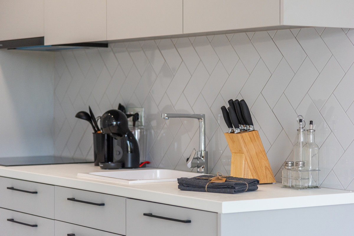 The property will be sold fully furnished and consists of a bright living/dining room, a fully equipped open plan kitchen, two bedrooms with fitted wardrobes, two bathrooms with underfloor heating, and a sunny terrace. Storage room and parking space in the underground garage is also included in the price.