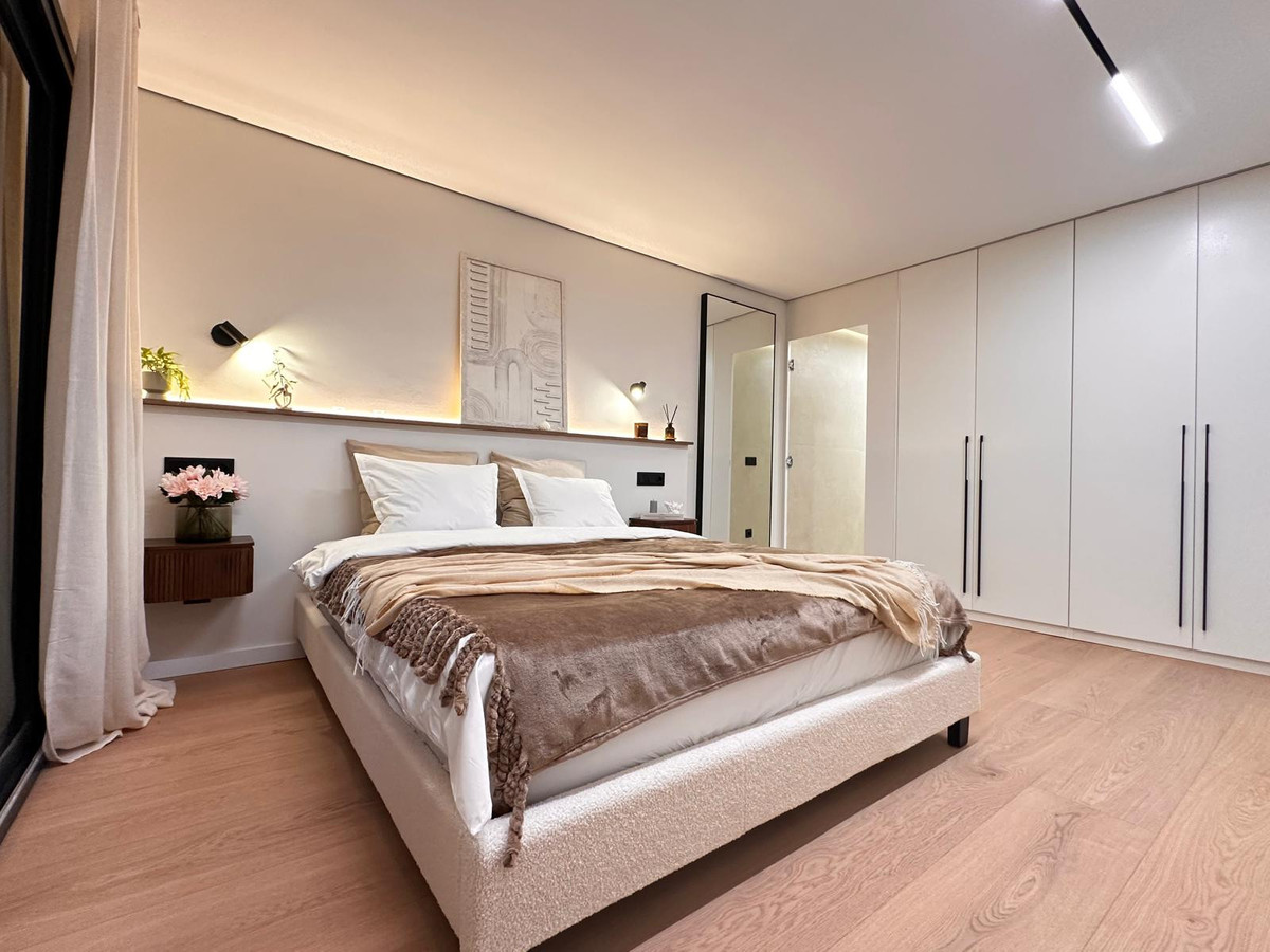 Inside, the apartment has been recently refurbished to a high standard, combining contemporary style with practicality. The open-plan living and dining area flows seamlessly into a fully fitted kitchen, perfect for entertaining friends or enjoying quiet family dinners. A cosy fireplace adds warmth on cooler evenings, complemented by air conditioning for year-round comfort. Both bedrooms feature built-in wardrobes, and the bathrooms are modern, bright, and fully equipped.