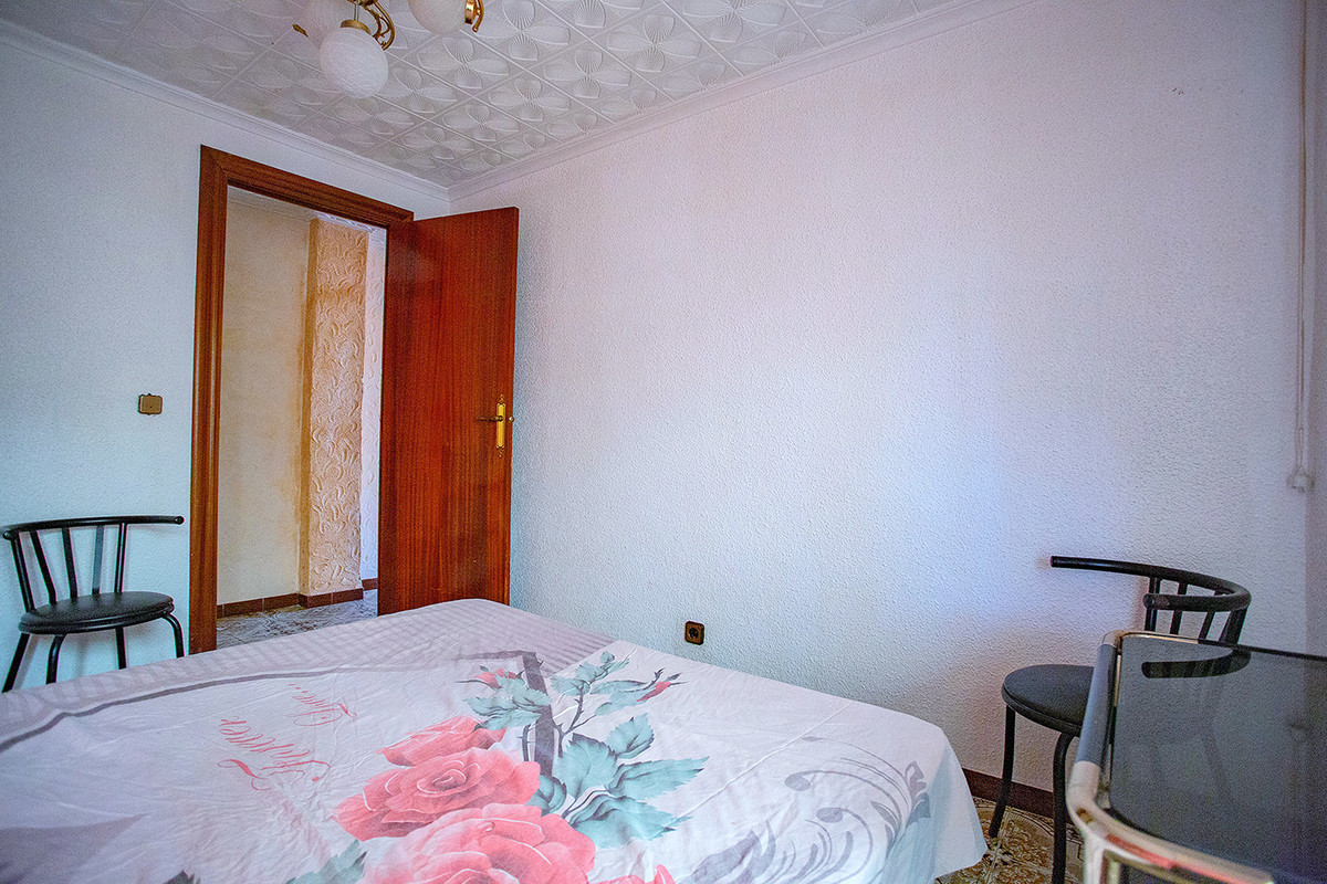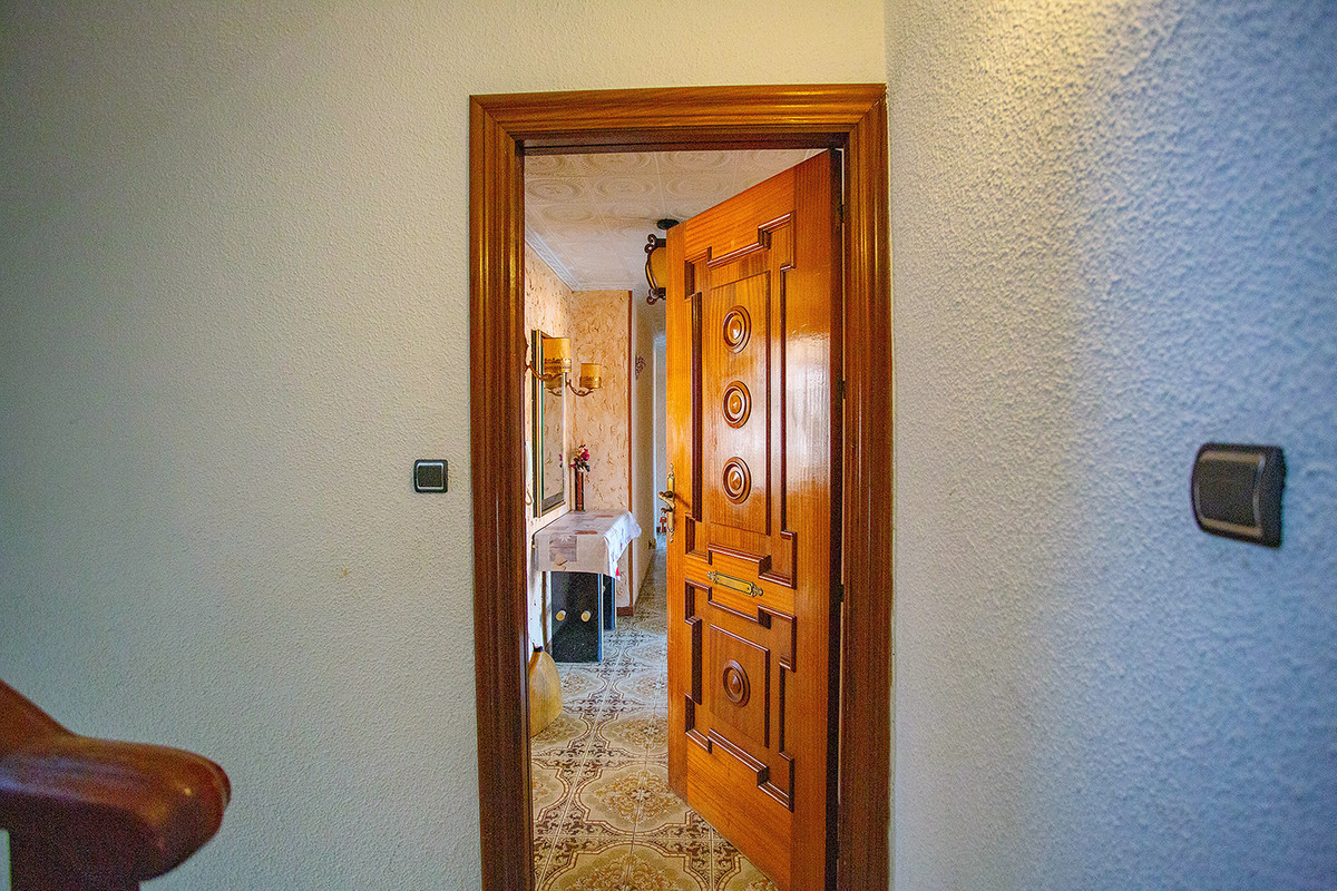 När du kommer in i lägenheten befinner du dig på höger sida i det rymliga vardagsrummet med ett imponerande tak och väggkonstverk. Där har du en komplett fönsterfront och tillgång till balkong med direkt utsikt över det stora torget i Benejúzar. Balkongen nås även från ett av de 3 sovrummen.