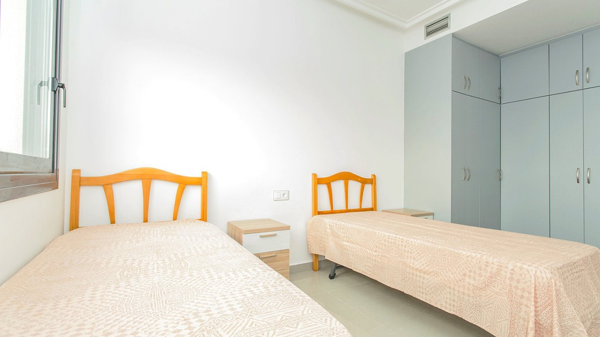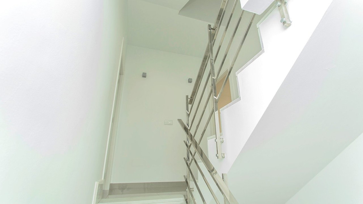 Unik villa med 3 sovrum och 3 badrum fördelat på två våningar. På första våningen hittar du ett kök och vardagsrum i öppen planlösning, en matsal och ett sovrum med eget badrum och inbyggd garderob. Från vardagsrummet har du direkt tillgång till trädgården via stora, polerade skjutdörrar. På andra våningen hittar du två sovrum med egna badrum och inbyggda garderober. Hela interiören i huset designades och tillverkades av inredningsarkitekter. I hela villan hittar du perfekt koordinerade LED-lampor, lampor och möbler. Huset är även utrustat med ett videointercom-larmsystem som kan styras via app. Uteområde Villan ligger på en 500 m2 stor tomt. I den vackra trädgården hittar du en pool med gott om plats för solstolar. Poolen är utrustad med LED-lampor. Du hittar också en grillplats i trädgården. Villan är en del av ett privat, gated community som erbjuder sina invånare en hög nivå av säkerhet. Det finns parkeringsplats för en bil på fastigheten. Omgivning Villan ligger i det exklusiva området Lomas de Cabo Roig i Orihuela Costa. Barer, restauranger och livsmedelsbutiker finns precis runt hörnet. Bara några minuters bilresa bort hittar du även de populära golfbanorna Campoamor, Villamartín och den prisbelönta golfbanan Las Colinas. La Zenia Boulevard, det största utomhusköpcentret i provinsen Alicante, ligger bara 15 minuters promenad bort. Här hittar du butiker som Zara, AlCampo, H&M, Decathlon, Primark, Medimarkt och många andra. Du hittar också en mängd vackra stränder bara några minuters bilresa bort.