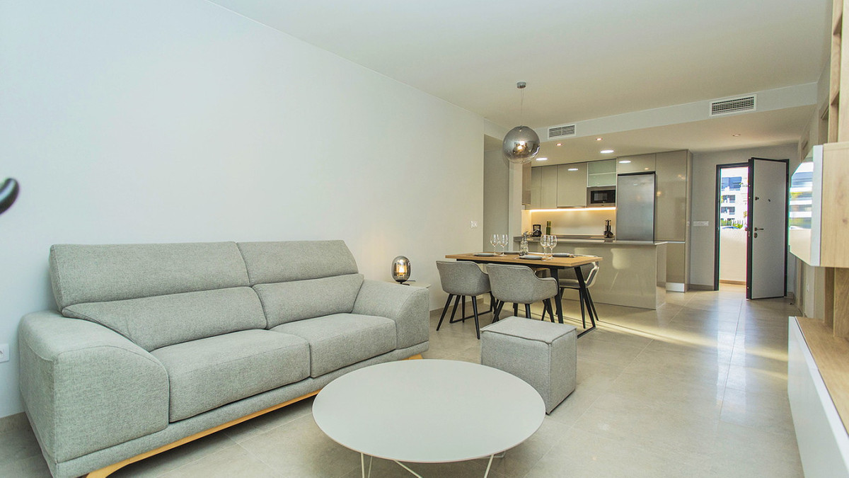Rymlig lägenhet på bottenvåningen med stor terrass i den exklusiva urbaniseringen Flamenca Village. Den består av två sovrum och två badrum, vardagsrum med öppet kök. Den säljs möblerad och lägenheten har en underjordisk parkeringsplats samt 1 parkeringsplats för gäster inom komplexet. Etapp 3 byggdes 2023 och huset har aldrig använts, så det anses i praktiken vara nybyggnation.