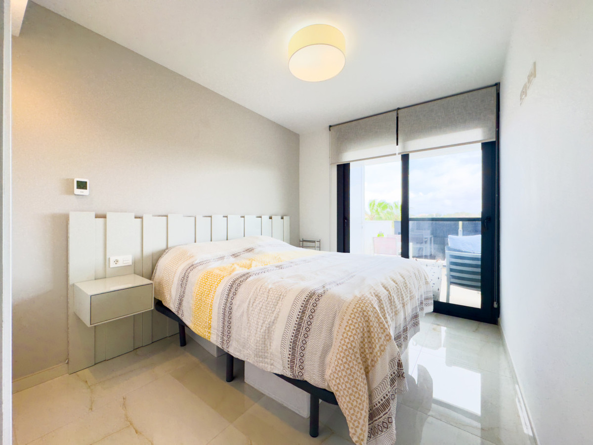 Denna moderna lägenhet i Orihuela Costa ligger på andra våningen i det exklusiva bostadsområdet Amanecer 3. Den har en sydvänd terrass, två garageplatser i källaren med elbilsladdare och ett förstklassigt läge mittemot den gemensamma poolen. Lägenheten har en boyta på 76,6 m² med två ljusa dubbelrum, två kompletta badrum med golvvärme och ett rymligt vardagsrum med öppen planlösning mot köket. Terrassen på 21 m² är utrustad med markiser och grill – perfekt för att njuta av solen året runt. Bostaden säljs delvis möblerad, är fullt utrustad och har luftkonditionering, larmsystem och myggnät. Amanecer 3 är ett lugnt och välskött område med generösa grönområden. Bara 3 km från de kristallklara stränderna vid Orihuela Costa och 5 minuters bilfärd från det populära köpcentret Zenia Boulevard. Ett utmärkt val både som permanentbostad och investering med god avkastning, oavsett om det gäller korttids- eller långtidsuthyrning.