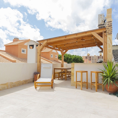 Rymlig bungalow i Torrelamata Torrevieja nära stranden La MataDenna rymliga bungalow ligger i det eftertraktade området Torrelamata i Torrevieja, endast 350 meter från den populära stranden La Mata – en av de mest uppskattade på Costa Blanca. Området erbjuder allt du behöver för ett bekvämt boende: inom 100 meter finns stormarknader, restauranger, apotek och andra viktiga tjänster.Bostaden har en privat terrass på 29 m², perfekt för att njuta av solen, äta måltider utomhus eller koppla av i lugn och ro. Inne finns ett stort vardagsrum med matplats som bjuder in till trevliga stunder med familj och vänner. På huvudetagen finns tre sovrum med inbyggda garderober samt ett fullt utrustat badrum i mycket gott skick.En stor fördel är källarplanet som nås via en intern trappa, där det finns två extra sovrum. Detta utrymme kan enkelt anpassas till fler sovrum, hemmakontor, gym eller lekrum – beroende på behov.Bostadsområdet erbjuder även gemensam utomhusparkering för de boende. Kombinationen av utmärkt läge, generösa ytor och flexibel användning gör denna bungalow i Torrevieja till ett idealiskt val både som permanent boende och som investering för uthyrning.