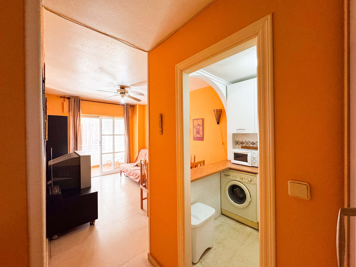 Denna 1-rumslägenhet i La Mata, Torrevieja, med inglasad terrass och sidovy mot havet, är ett utmärkt tillfälle för semesterboende eller investering. Belägen endast 100 meter från stranden, har den ett ljust vardagsrum med matplats, utrustat kök, ett sovrum och ett helt renoverat badrum med dusch. Den inglasade terrassen ger extra utrymme med termisk och akustisk isolering, perfekt för året runt bruk. Byggnaden har en nyrenoverad hiss och anpassad tillgång för personer med nedsatt rörlighet. Det förmånliga läget erbjuder närhet till service som mataffärer, restauranger, kollektivtrafik och naturparken La Mata laguner på tio minuters promenad. Nyligen gjorda förbättringar inkluderar köksfronter och terrassglas, vilket garanterar komfort och kvalitet. Överväg denna lägenhet som en investering med möjligheter till säsongsuthyrning.