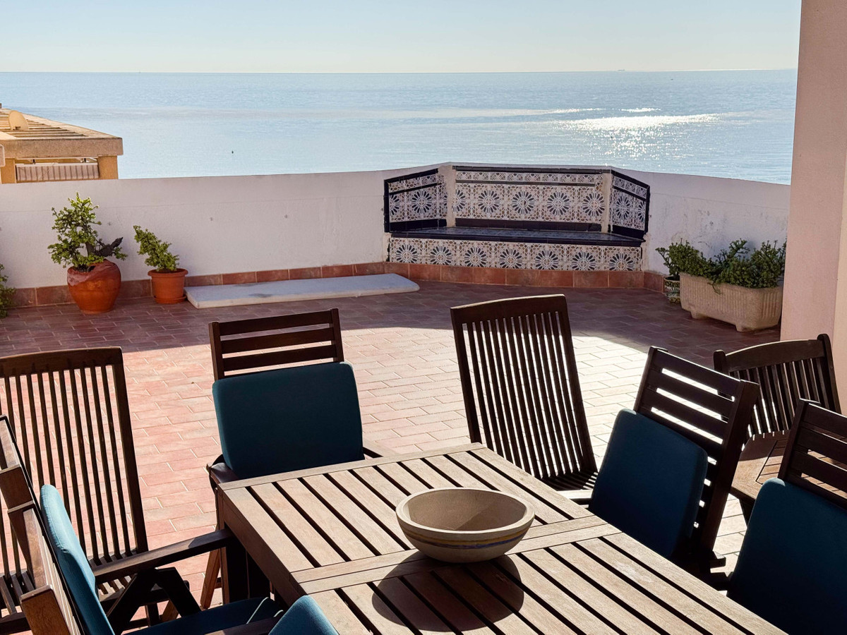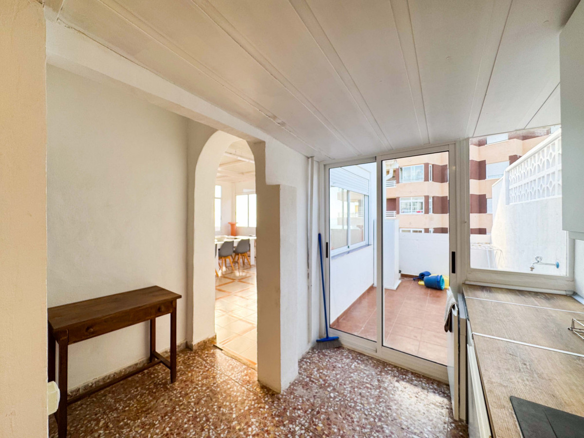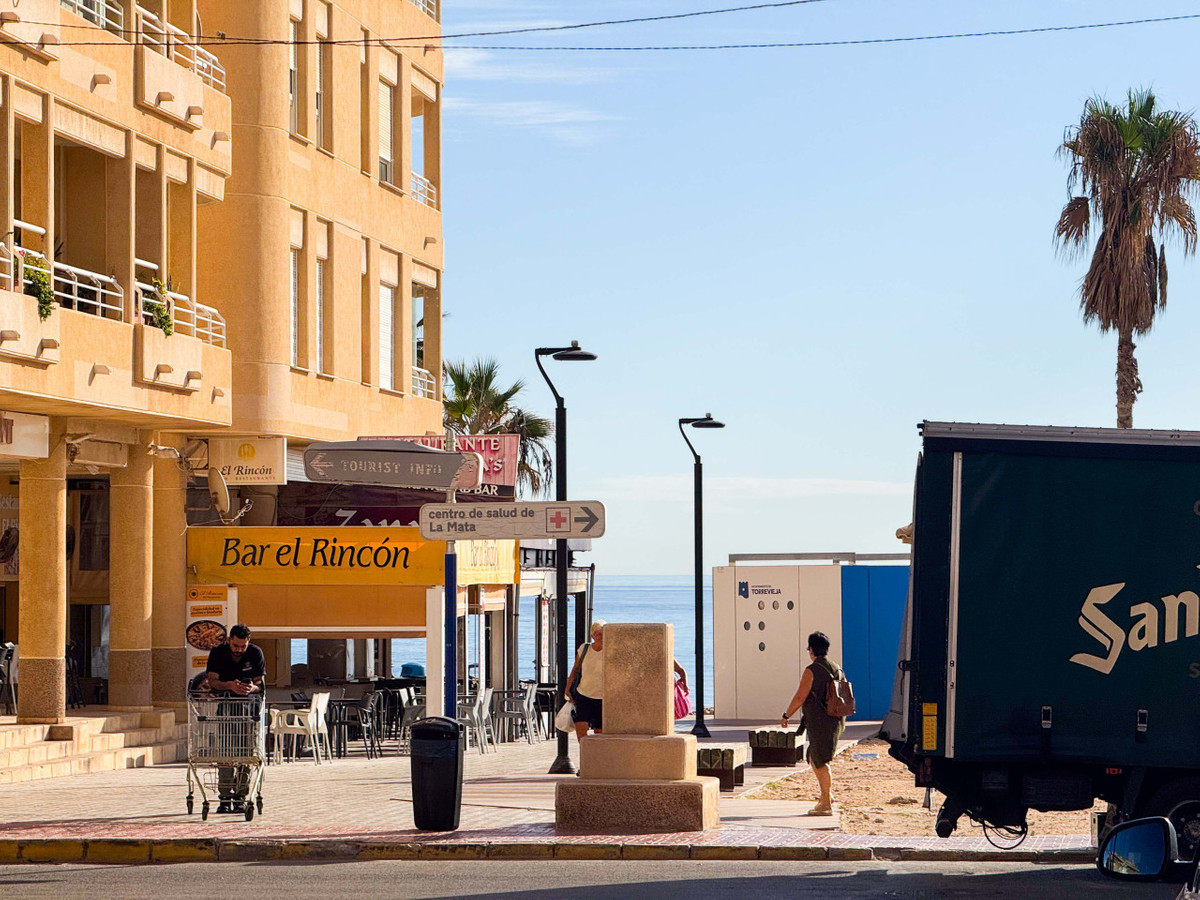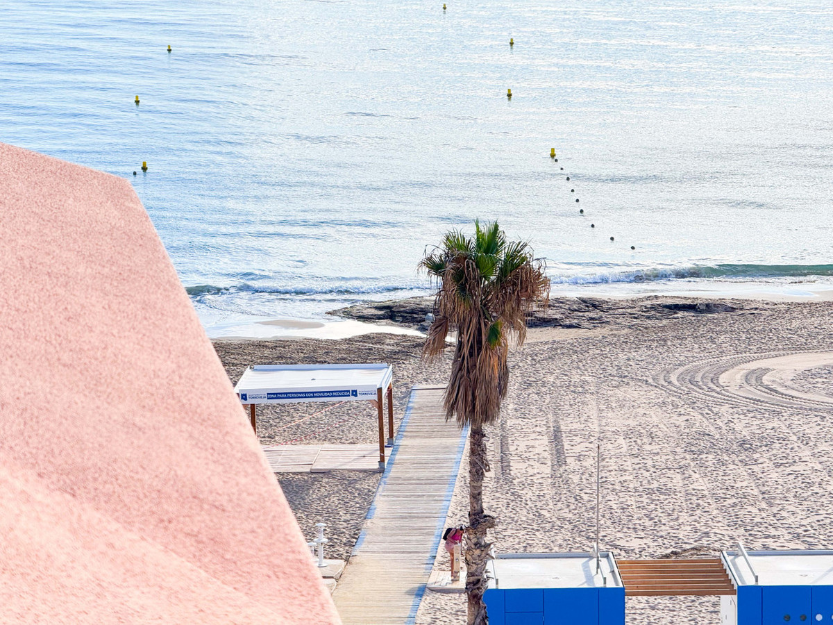 Denna penthouse i La Mata, Torrevieja, har en stor hörnterrass med panoramautsikt över havet och erbjuder en unik möjlighet att bo nära stranden. Med 161 m2 byggyta har denna lägenhet fyra rymliga sovrum, två stora vardagsrum och en matsal samt två kompletta badrum, varav ett är en suite. Planlösningen inkluderar ett separat kök med tvättstuga och en inglasad terrass som används som matsal, perfekt för att njuta av morgon- och eftermiddagssolen med havsutsikt från nästan alla rum. Fastigheten kan renoveras efter egen smak och ges en personlig touch. Belägen i centrala La Mata, bara 20 meter från restauranger, stormarknader, apotek och andra tjänster, kombinerar denna penthouse komfort med ett förstklassigt läge. Idealisk för investering med säsongsuthyrning eller som permanent bostad. Missa inte denna exceptionella möjlighet. Kontakta oss för att boka en visning eller begära en virtuell rundtur och detaljerade planer.