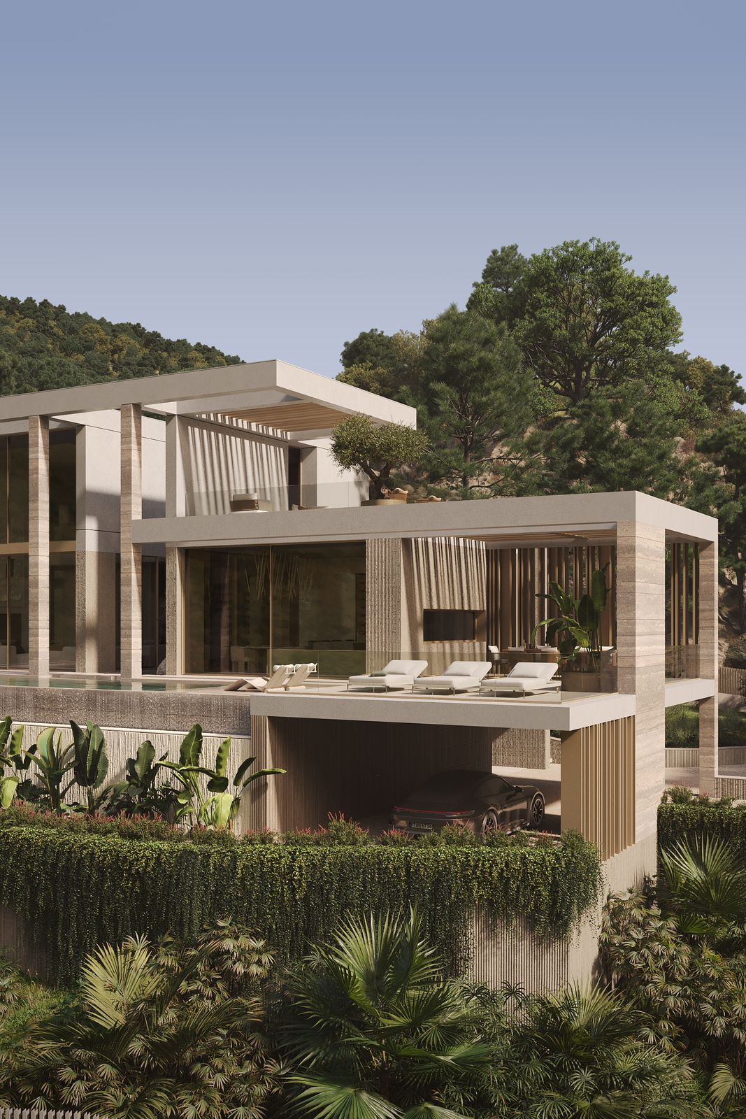 The villa will offer 647 m² of built area on a generous 2,167 m² plot, distributed to maximize space, light, and privacy. It features 5 spacious bedrooms and 7 bathrooms, complemented by four terraces that create seamless indoor-outdoor living. A private swimming pool and landscaped outdoor areas complete the exterior.