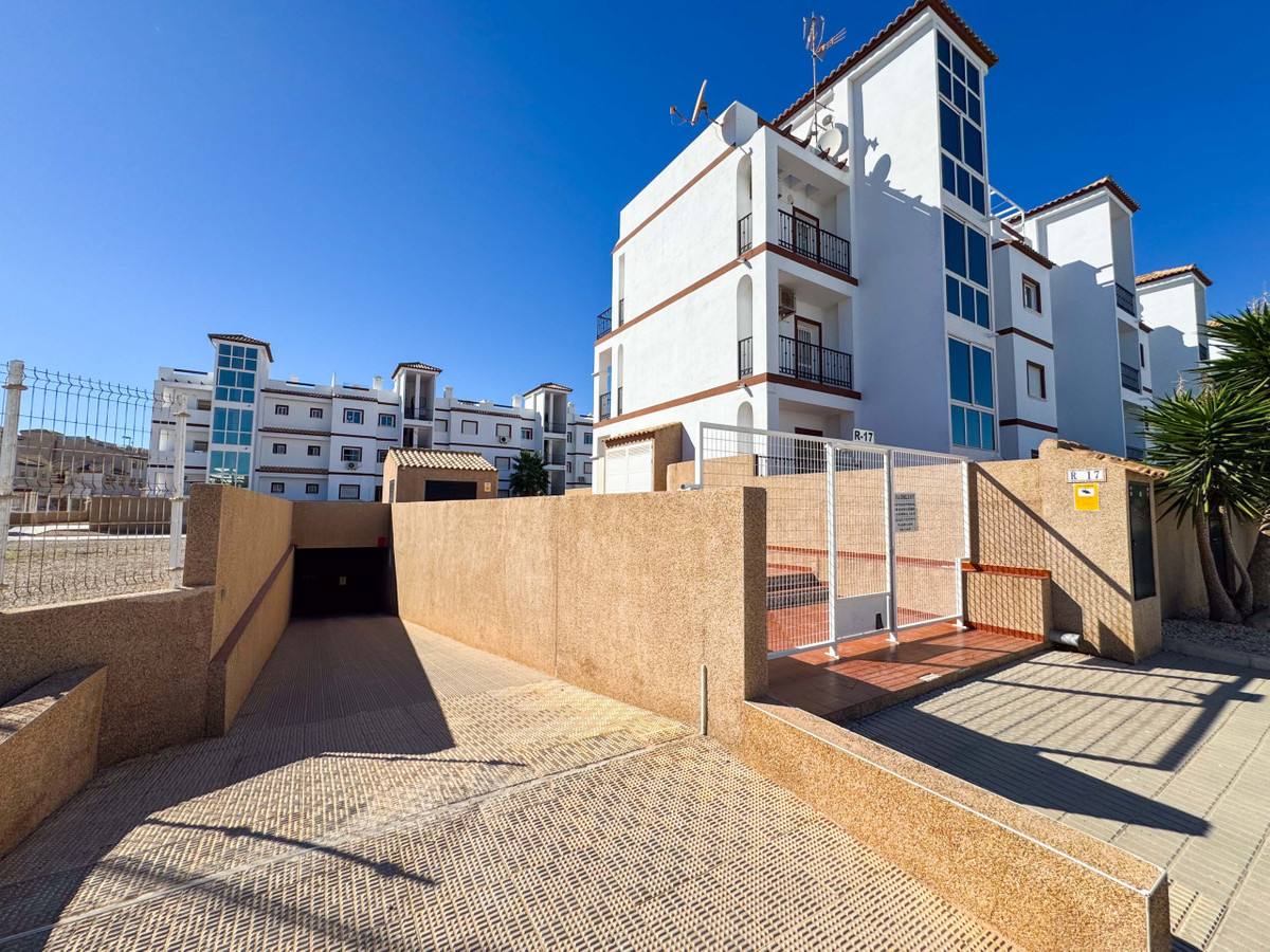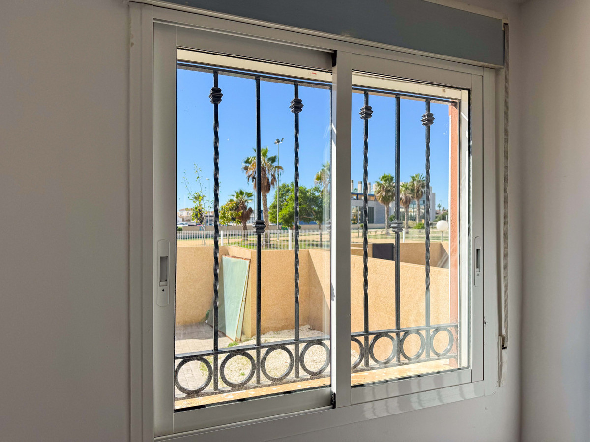 Bottenvåningslägenhet i Punta Prima, Orihuela Costa, med privat trädgård, gemensam pool och täckt privat parkeringsplats. Bostaden har ett rymligt vardagsrum med matplats som öppnar mot en 16 m² stor uteplats och en trädgård på cirka 51 m², med privat dörr direkt till poolområdet. Det amerikanska köket är modernt och funktionellt. Det finns två sovrum med inbyggda garderober och två kompletta badrum som erbjuder komfort och utrymme. I priset ingår en täckt privat parkeringsplats, perfekt för att skydda ditt fordon. Beläget i ett lugnt och attraktivt område i Orihuela Costa, nära till tjänster och fritidsaktiviteter. Perfekt för dig som söker en lägenhet med direkt tillgång till pool och rymliga utomhusytor. Vi rekommenderar ett personligt eller virtuellt besök för att få en fullständig bild. Dessutom är det en bra investering med möjlighet till säsongsuthyrning. Kontakta oss för att boka visning av denna utmärkta möjlighet.