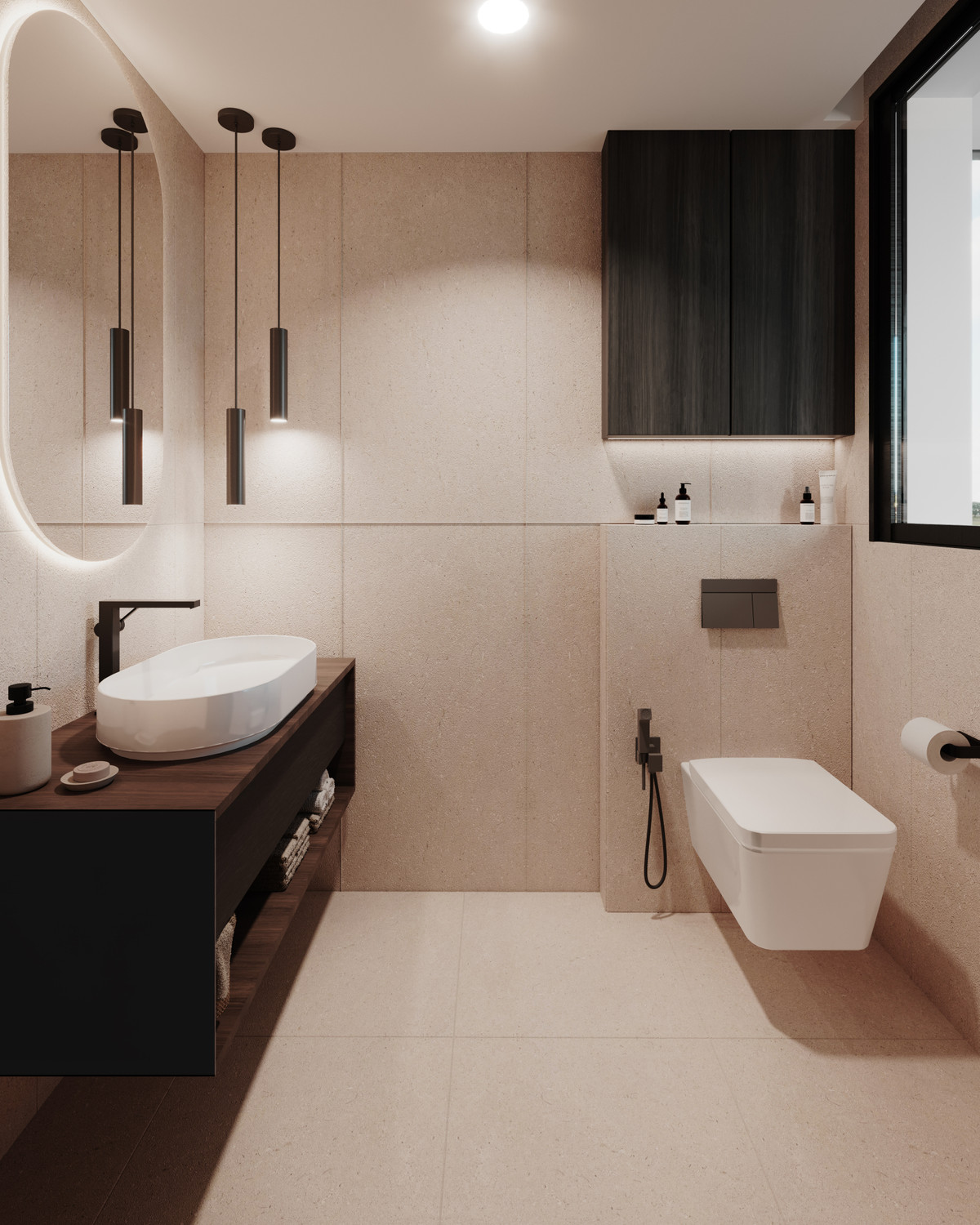 Varje radhus är fördelat över fyra våningar och har en privat glashiss med direkt tillgång till alla plan. De rymliga terrasserna erbjuder möjlighet till jacuzzi, utomhuskök med grill samt områden för måltider och avkoppling utomhus, vilket skapar ett sömlöst inomhus–utomhusliv.
