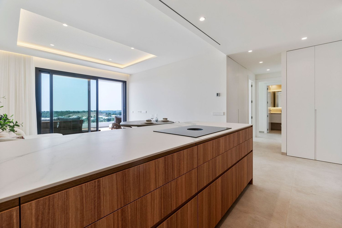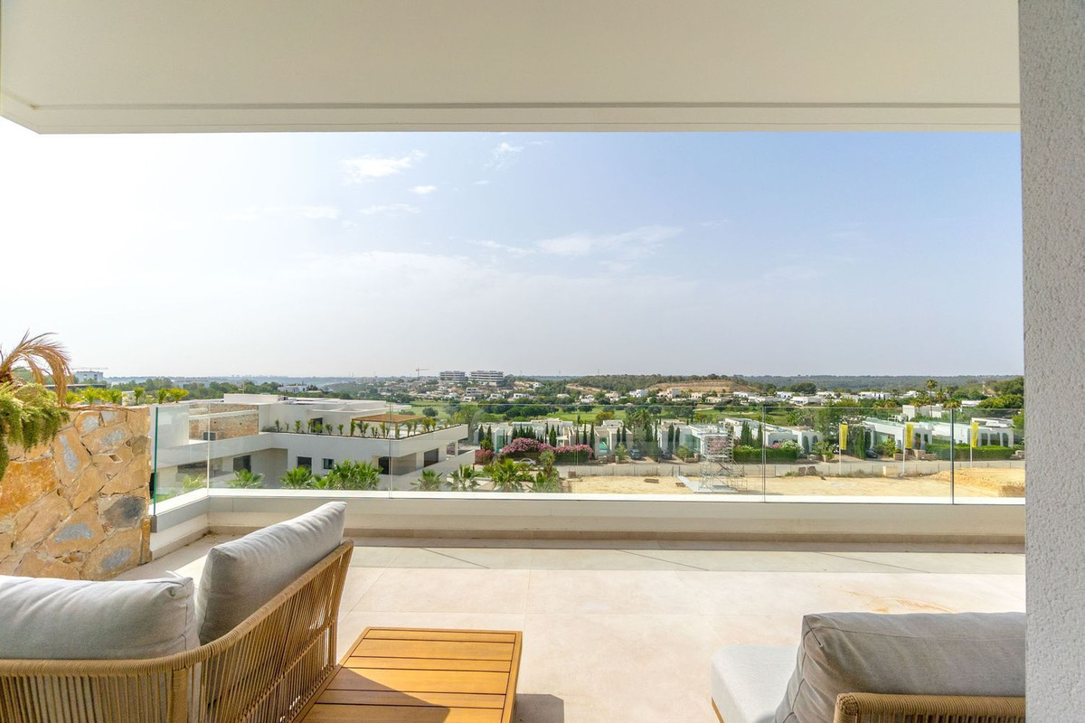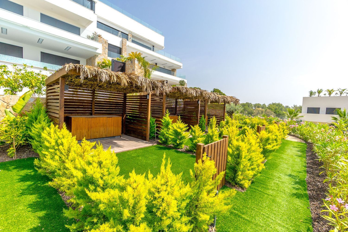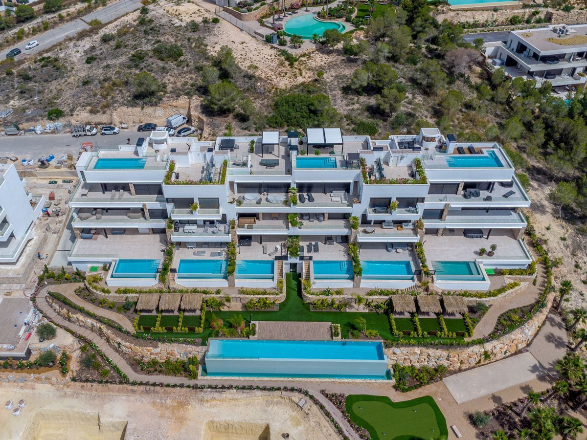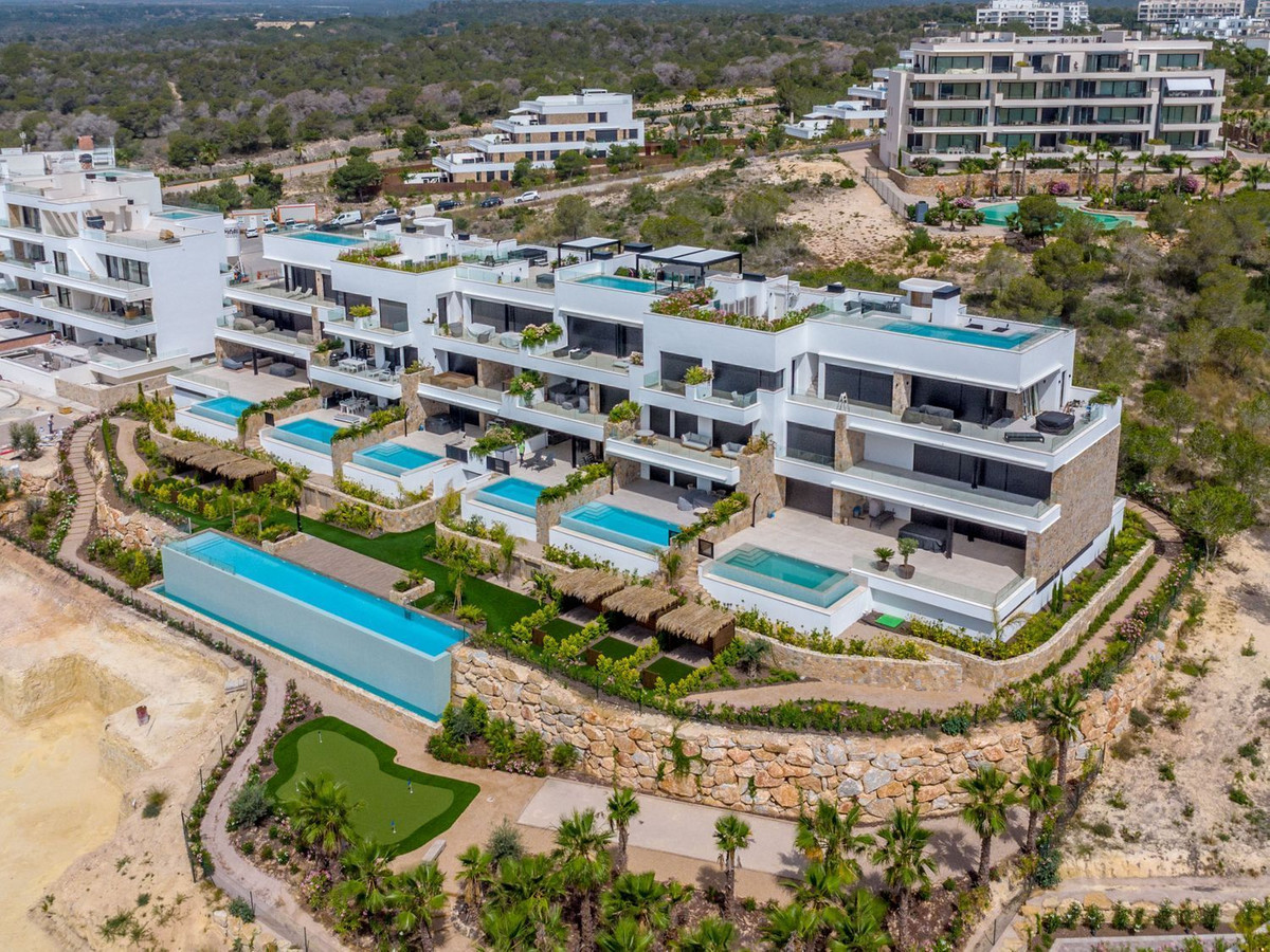 En helt ny lägenhet, aldrig tidigare bebodd och smakfullt inredd, belägen i den prisbelönta resorten Las Colinas Golf & Country Club. Bostaden erbjuder hög energieffektivitet och enastående utsikt över golfbanan, det omgivande naturlandskapet och den magnifika infinitypoolen precis framför.~Interiören är ljus och modern, med en tydlig medelhavsstil och jordnära färger som skapar en varm och hemtrevlig känsla. Det rymliga köket är öppet mot vardagsrummet, där det finns gott om plats för både soffgrupp och matplats. Utomhus finns en inbjudande terrass med utgång från både vardagsrummet och de två sovrummen. Lägenheten har två badrum, varav ett är en suite med master bedroom. De gemensamma utrymmena är utformade för total avkoppling och välmående, med en vacker infinitypool, välskötta trädgårdar, gym, ångbastu och bastu. En garageplats och ett förråd ingår i priset. Las Colinas Golf & Country Club är en prisbelönt resort belägen i Orihuela Costa på södra Costa Blanca. Här finns flera restauranger, ett sportcenter, vandringsleder och ett modernt gym. Den utmärkta placeringen gör det möjligt att njuta av stranden, shopping och service – allt i en lugn, exklusiv och privat miljö.