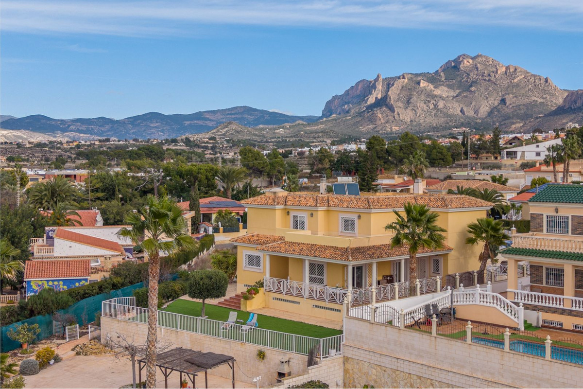 Located in Pisnella, one of the most prestigious residential areas of Busot, this exceptional detached villa offers privacy, generous living space and refined Mediterranean comfort, just a short walk from the village centre.