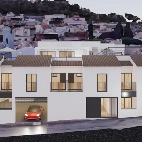 Plot of 122 m² for sale on Calle Torcal, with a preliminary project for the construction of townhouses distributed over a basement, ground floor, and first floor.