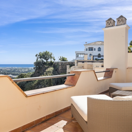 This exceptional duplex penthouse is located within an exclusive residential community, set in the heart of the El Higueral Golf Course. Surrounded by over 50,000 m² of beautifully landscaped communal gardens, the property offers a refined lifestyle defined by privacy, comfort, and natural surroundings.