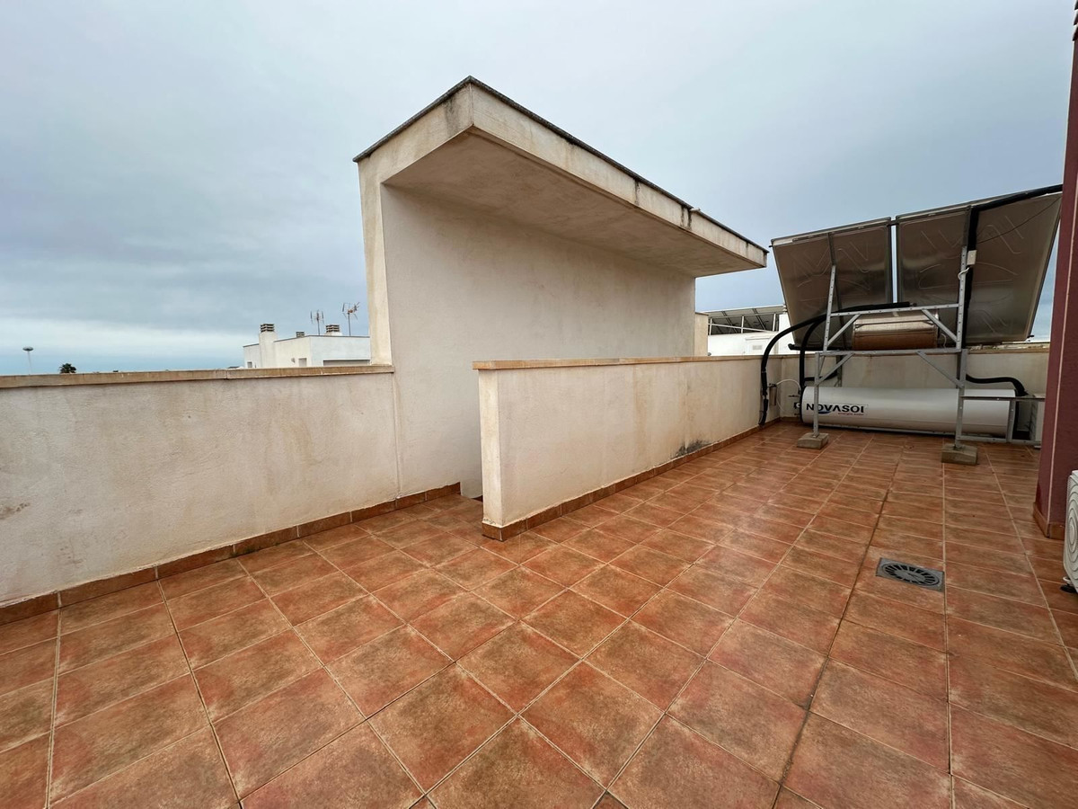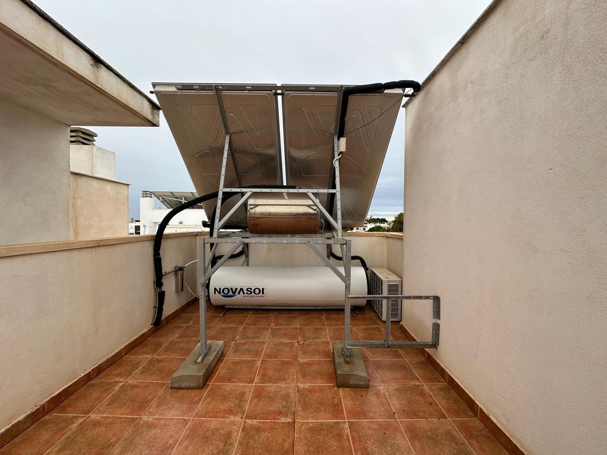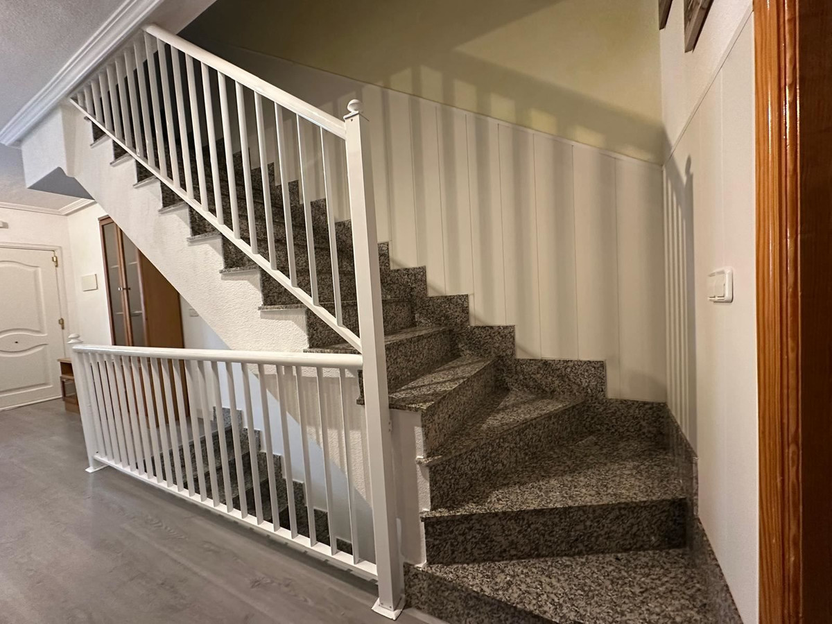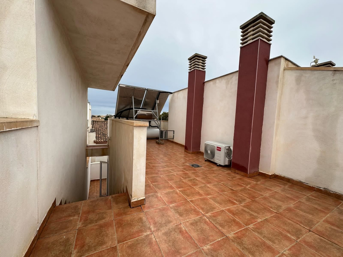 Bostaden erbjuder tre komfortabla sovrum och två badrum, perfekt för både familjeliv och gäster. Planlösningen är genomtänkt och bjuder in till socialt umgänge samtidigt som varje rum har sin egen avskilda ro. Från bostaden leder trappan upp till en privat takterrass – en lugn plats där utsikten öppnar sig och kvällsljuset skapar en alldeles särskild atmosfär.