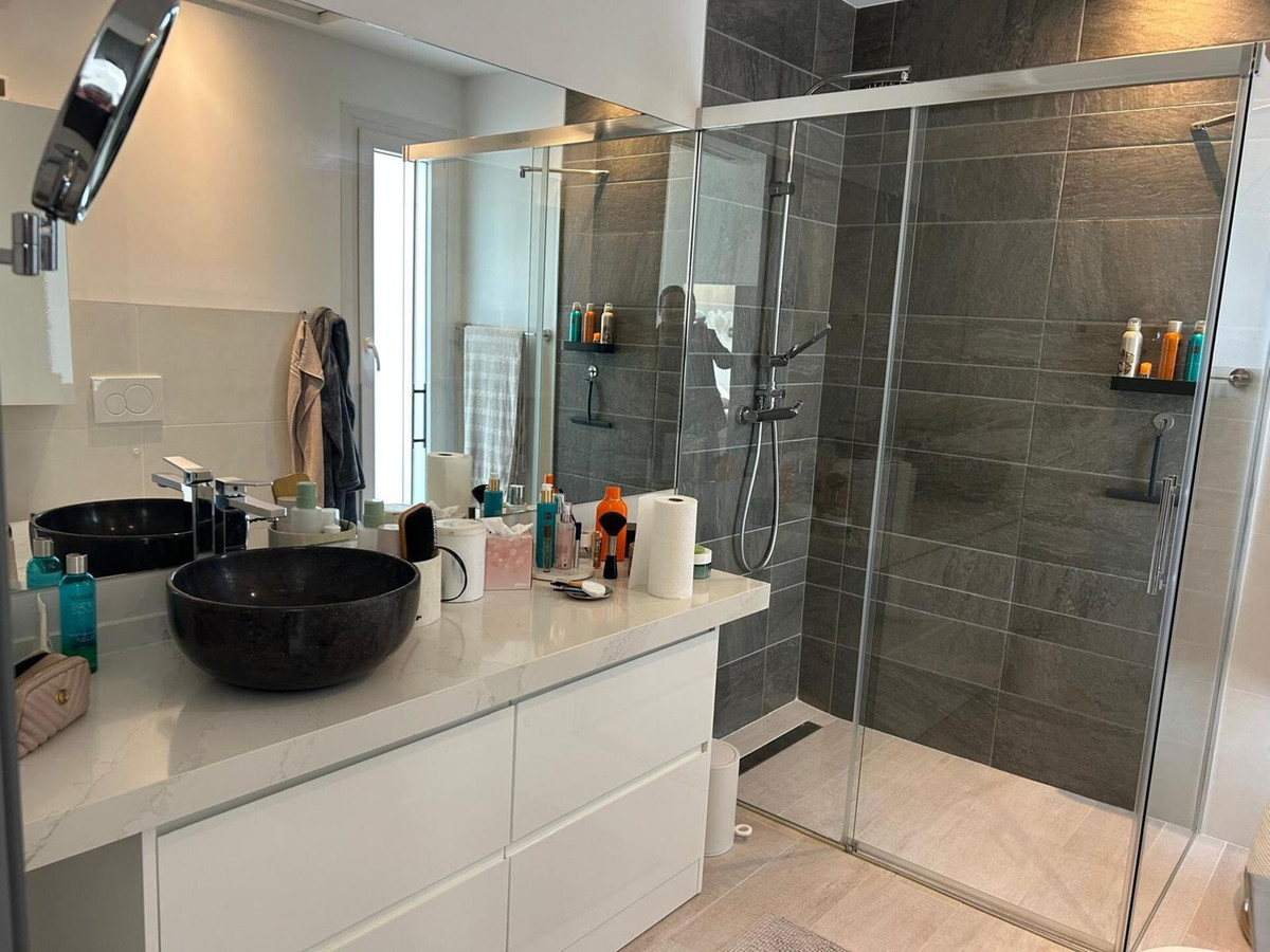 The property is comfortably distributed over a single floor, offering 3 spacious bedrooms with fitted wardrobes, 2 full bathrooms, a practical storage room and bright, well-utilised spaces. It has central heating and centralised air conditioning, ensuring the perfect temperature in any season.