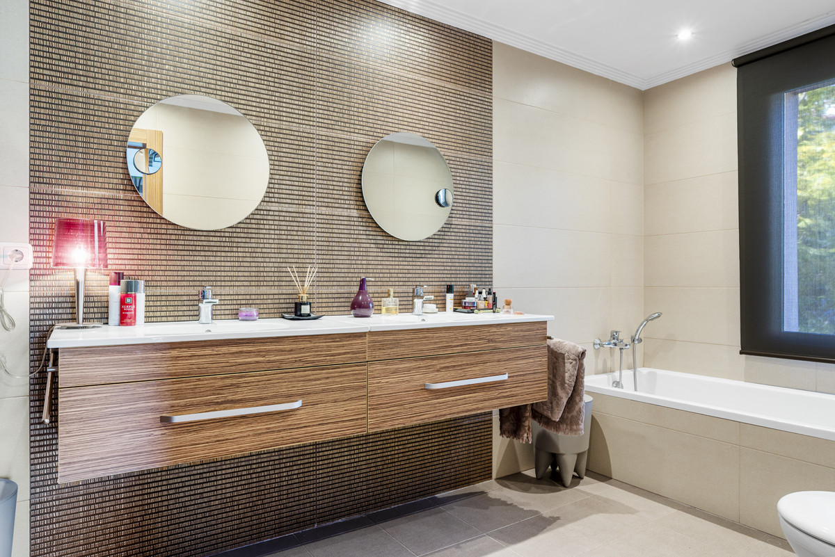 Upstairs, the master suite features a walk-in dressing room, en-suite bathroom and a private terrace with jacuzzi and spectacular sea views. Additional bedrooms provide comfort and privacy for family and guests.