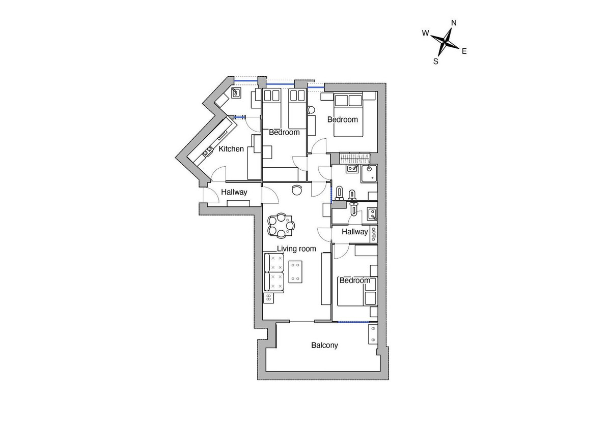 Bebyggd yta på 88 m² med tre sovrum, ett komplett badrum och en gästtoalett. Planlösningen omfattar en entréhall, ett separat kök med angränsande tvätt-/förrådsutrymme samt vardagsrum och matplats med direkt utgång till en stor sydvänd terrass. Terrassen har ett privat förråd lämpligt för utomhus- och strandutrustning. Lägenheten ligger på 4:e våningen i en byggnad med hiss.
