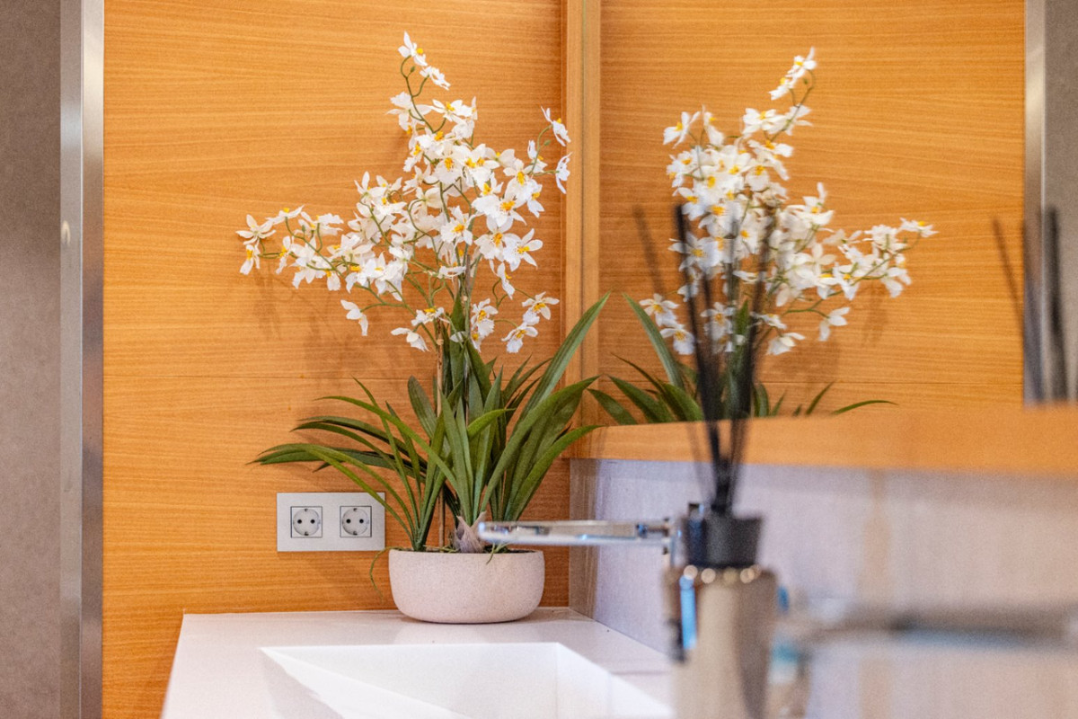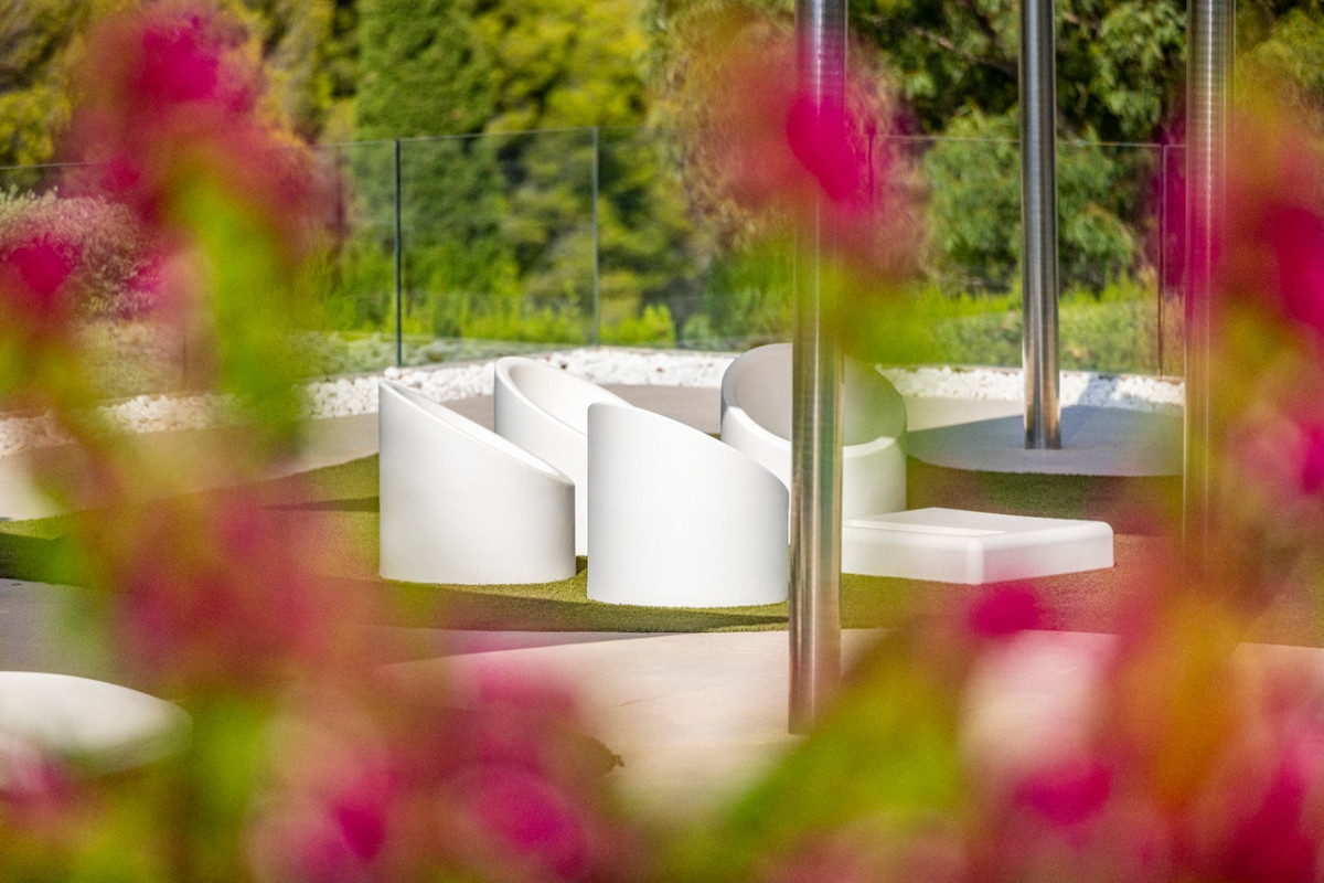 I det huvudsakliga vardagsrummet har vi ett öppet kök-matplats-vardagsrum som erbjuder den ultimata moderna bekvämligheten. Vardagsrummet har en projektor och duk som är redo att förvandla rummet till en privat biograf med ett knapptryck, perfekt för filmkvällar. Här hittar vi också den stora öppna terrassen. Den vidsträckta 110m2 terrassen, komplett med en privat jacuzzi, erbjuder det perfekta utrymmet för avkoppling, underhållning och njutning av medelhavsomgivningen. Den privata jacuzzin erbjuder en tillflykt för att koppla av, ett utrymme skapat för stunder av komfort, gemenskap och ren njutning. Med sin söderläge badar hemmet i naturligt ljus hela dagen. Njut av ljusare interiörer, lägre energikostnader och fantastiska ljusfyllda vyer året runt.