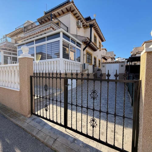 We present to you an exclusive luxury villa located in a prestigious residential area between Benidorm and La Nucía. The property is situated on a spacious plot of 984 m² and has a built area of 258 m², distributed over two floors that perfectly combine elegance, comfort, and functionality.Upon entering the house, a cozy hallway leads to a spacious and bright living room, an elegant dining room, and a charming glazed terrace with marble floors, from where you can enjoy beautiful views of the well-tended garden surrounding the house.The home has been completely renovated using high-quality natural materials, including premium wooden floors. The resting area has two comfortable bedrooms that share a complete bathroom, in addition to a large master suite with a spacious dressing room and a bright en-suite bathroom with natural light, equipped with a bathtub, independent shower, and double sink.Additionally, the home features an independent bedroom with a private bathroom, ideal for guests or family members, offering maximum comfort and independence. This space is conveniently connected to the fully equipped kitchen and the laundry area.The kitchen has direct access to a side terrace, perfect for outdoor dining. From there, you can access an impressive glazed barbecue area with a courtesy bathroom and direct access, through an elegant wooden deck, to the pool and solarium.On the plot, there is also a space designated for the storage of sports and nautical equipment. The upper floor has a spacious multifunctional room that can be used as an office, game room, or leisure area, in addition to two cozy guest bedrooms that share a complete bathroom.The garden, carefully designed, combines different shades of green with majestic palm trees and abundant vegetation, creating an intimate, relaxing, and very exclusive atmosphere.The urbanization offers 24-hour private security, a communal pool, tennis courts, and a social club.A unique opportunity to acquire a truly exclusive property in one of the most sought-after areas of the Costa Blanca. Contact us to arrange a private visit.