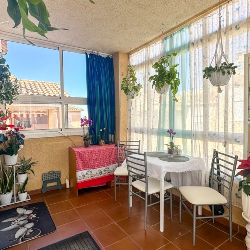 Denna stilrena bungalow på översta våningen är belägen i det eftertraktade området Los Balcones i Torrevieja, nära både havet och välkända golfbanor.