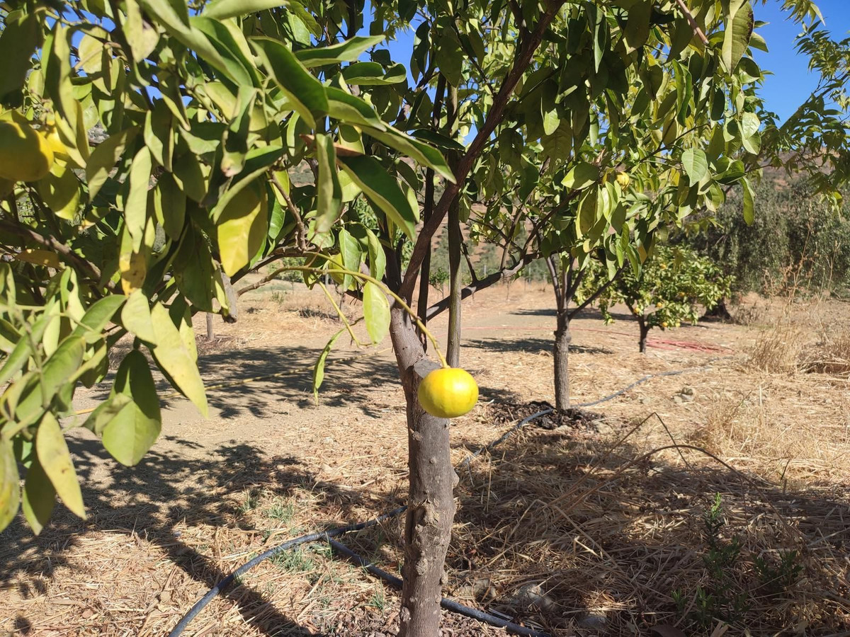 Crops: 110 olive trees, 12 avocado trees, 30 pomegranate trees, and more