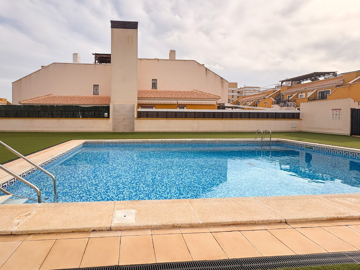 This ground-floor townhouse is located in a quiet, gated community in Arenales del Sol , just a short distance from the sea, offering an ideal combination of comfort, outdoor space, and a prime location . Being a corner property , it enjoys greater privacy and abundant natural light throughout the day thanks to its south-southeast orientation .\n