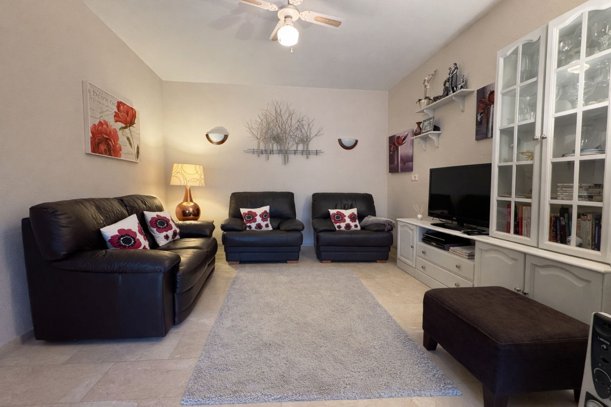 Sold fully furnished. With absolutely stunning views this apartment is situated right on the first line of Mijas Golf and faces west for the lovely afternoon and evening sun with wonderful sunsets. The gated complex of only 7 properties enjoys a large communal swimming pool and superb green areas. The property consists of a lovely split level lounge diner, 2 large bedrooms and 2 bathrooms, a fully fitted kitchen but best of all a lovely covered terrace with direct access onto the communal gardens. This property also includes a large underground parking space. Simply a fantastic investment as a permanent residence or holiday home.
