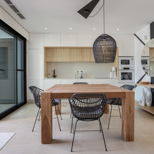 Discover unparalleled luxury in this beautiful villa in the heart of Benijofar This exceptional custom-built villa embodies modern elegance and comfort in a peaceful, inviting setting, just minutes from all essential amenities, making it the perfect family home or holiday retreat. Upon entering, you're greeted by an open and airy layout designed for seamless indoor-outdoor living. The ground floor features a spacious bedroom with built-in wardrobes and a luxurious en suite bathroom. One of the villa's most unique features is its direct access to the pool: simply slide open the large glass doors and you can dive into your private oasis. Upstairs you will find three more spacious bedrooms, two of which have en-suite bathrooms, ensuring maximum privacy and comfort. The crown jewel of the top floor is the expansive solarium, where you can enjoy stunning panoramic views. It's the perfect spot for sunbathing, entertaining guests, or enjoying serene sunsets. The villa also features a large basement with ample space for a garage and additional storage. The spacious basement offers endless possibilities, with the potential to be transformed into an additional living space, entertainment area, or guest suite, adding comfort and versatility to your lifestyle. A state-of-the-art water purification system provides clean, purified water throughout the house, highlighting the attention to detail in every corner. This luxury villa combines first-class design, location, and amenities, offering the ultimate in Mediterranean living. Don't miss this opportunity to own a slice of paradise in Benijofar!