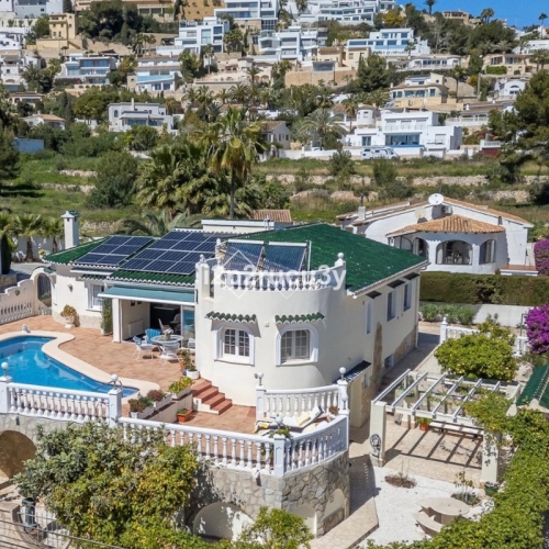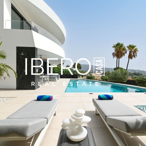 Luxury villa with several terraces, solarium, swimming pool, summer kitchen, gym, garage, 5 bedrooms, open kitchen, guest apartment and alarm system.