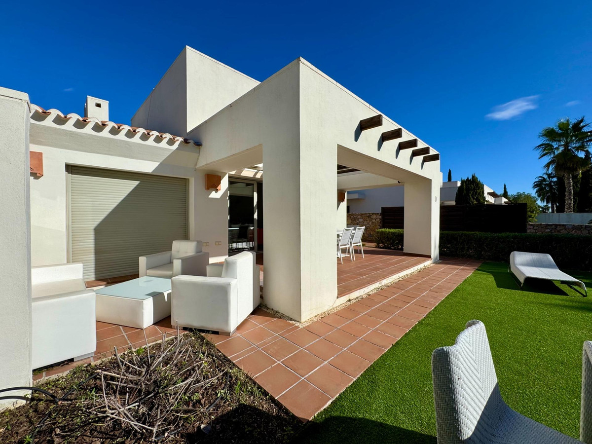 Welcome to Villa Encina, an architectural gem located in the heart of the prestigious Las Colinas complex, where exclusivity, light, and nature come together to offer an unparalleled Mediterranean lifestyle. With 108 m2 of built space, fully furnished, and thoughtfully designed, this villa exudes elegance and comfort in every corner. Its spacious bedrooms and bright living areas, south-facing, create a warm and inviting atmosphere, perfect for daily life or entertaining guests.~~The true charm of Villa Encina lies in its 70 m2 covered terrace, a seamless extension of the interior where you can enjoy sunny breakfasts, outdoor dinners, or peaceful moments surrounded by lush greenery. The 372.24 m2 plot provides a private garden and a designated parking area, ensuring complete privacy and convenience.~~Surrounded by top-tier golf courses, nature trails, and high-quality amenities, this villa is more than just a home: it is a Mediterranean sanctuary where every detail has been designed to blend style, light, and well-being. Villa Encina offers the opportunity to experience the authentic Las Colinas lifestyle—a move-in ready home, inviting you to enjoy life, serenity, and sophistication in an incomparable setting.