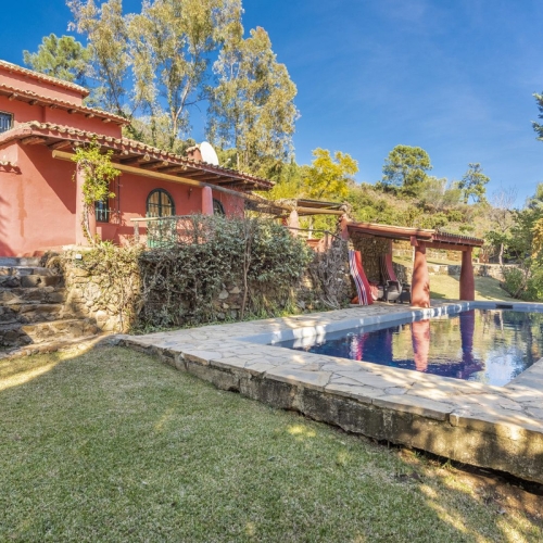 Beautiful villa in the Parque Botanico urbanization, completely renovated. The house has four bedrooms, four bathrooms, a living room, kitchen, garage, storage room, garden, heated pool, jacuzzi, BBQ area, billiards table, and forest views. The urbanization features several swimming pools with a poolside bar, paddle tennis courts, tennis courts, squois, a football/basketball court, a heated pool, a gym, saunas, and a jacuzzi, and is located just 15 km from Estepona and San Pedro de Alcantara.