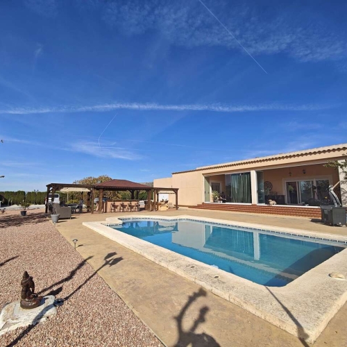 This well-presented villa is located in a quiet residential area of Sax, within walking distance of the town. Set on a generous 2,500 m² plot, the property offers privacy, space, and beautiful views of the surrounding mountains and the historic Sax castle.The house has a built area of 164 m² and is fully furnished, ready for comfortable living. Inside, there are four bedrooms, one of which is currently used as a second lounge and reading room. The home also features two separate living areas, a fully equipped kitchen, air conditioning, and a fireplace for the cooler months. The bathroom includes both a jacuzzi and a separate shower.Outside, the villa offers excellent facilities for enjoying the Mediterranean lifestyle. The plot includes a private swimming pool, a tennis court, a barbecue area, and a covered porch for two cars. There is also an additional room next to the carport, ideal for use as a small gym or hobby space. Further features include electric entrance gates, a storage building with a guardhouse, and an area currently used for keeping pigeons.Although the property is surrounded by neighbours, it remains private and peaceful, making it a great option for year-round living or a spacious holiday home.About the AreaSax is a lively and traditional town in inland Alicante, known for its impressive castle, welcoming community, and excellent local services. With shops, restaurants, schools, and a train connection nearby, it offers everyday convenience while still enjoying a relaxed countryside setting. Alicante airport and the Costa Blanca beaches are also within easy reach for regular day trips.We have a large portfolio of properties in the Costa Blanca and Costa Calida areas, specialising in country properties, villas, fincas, building plots and design and build options in the Alicante and Murcia regions with a particular emphasis on Elda, Monovar, Pinoso, Sax, Villena, Aspe, Fortuna, Albacete and many more surrounding areas. We have been established since 2004 and have decades of experience between the team which we bring to bear to help you find and secure your new dream home. We help you every step of the way to make sure your purchase in Spain is safe and hassle free. We are not here to sell you a property, we are here to help you realise your dream and find what is right for you. With us you are in the safest hands. Contact us now to have a no obligation chat about how you too can realise your dreams.