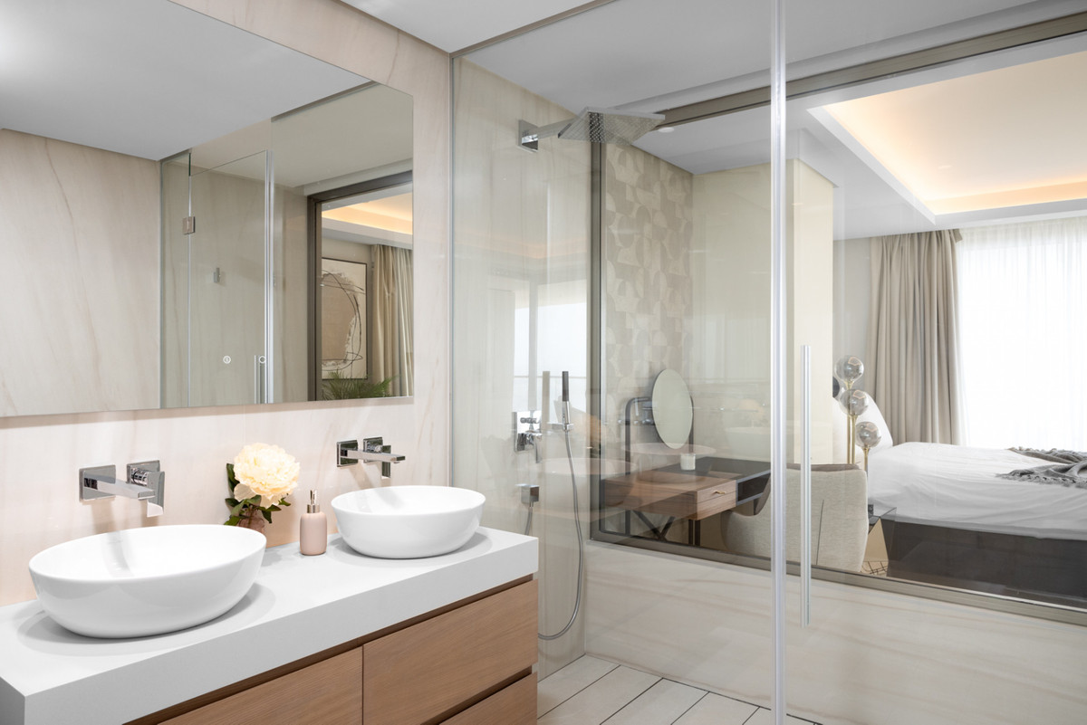 This elegant apartment offers a generous layout with three bedrooms and three bathrooms, all finished with top-quality materials. Its modern design is enhanced by cutting-edge smart home technology, including underfloor heating, air conditioning, high-speed Wi-Fi, and a smart TV. Additionally, it includes two private parking spaces, ensuring convenience and security.