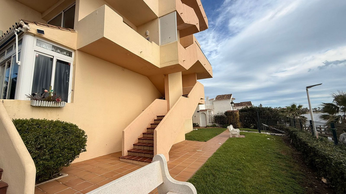 Charming ground floor apartment for sale in the well-known La Resinera urbanization, located in El Pirata – New Golden Mile, Estepona, in a privileged frontline beach position just a few metres from the sea. This is an excellent opportunity both as a holiday home and as a secure investment on the Costa del Sol.