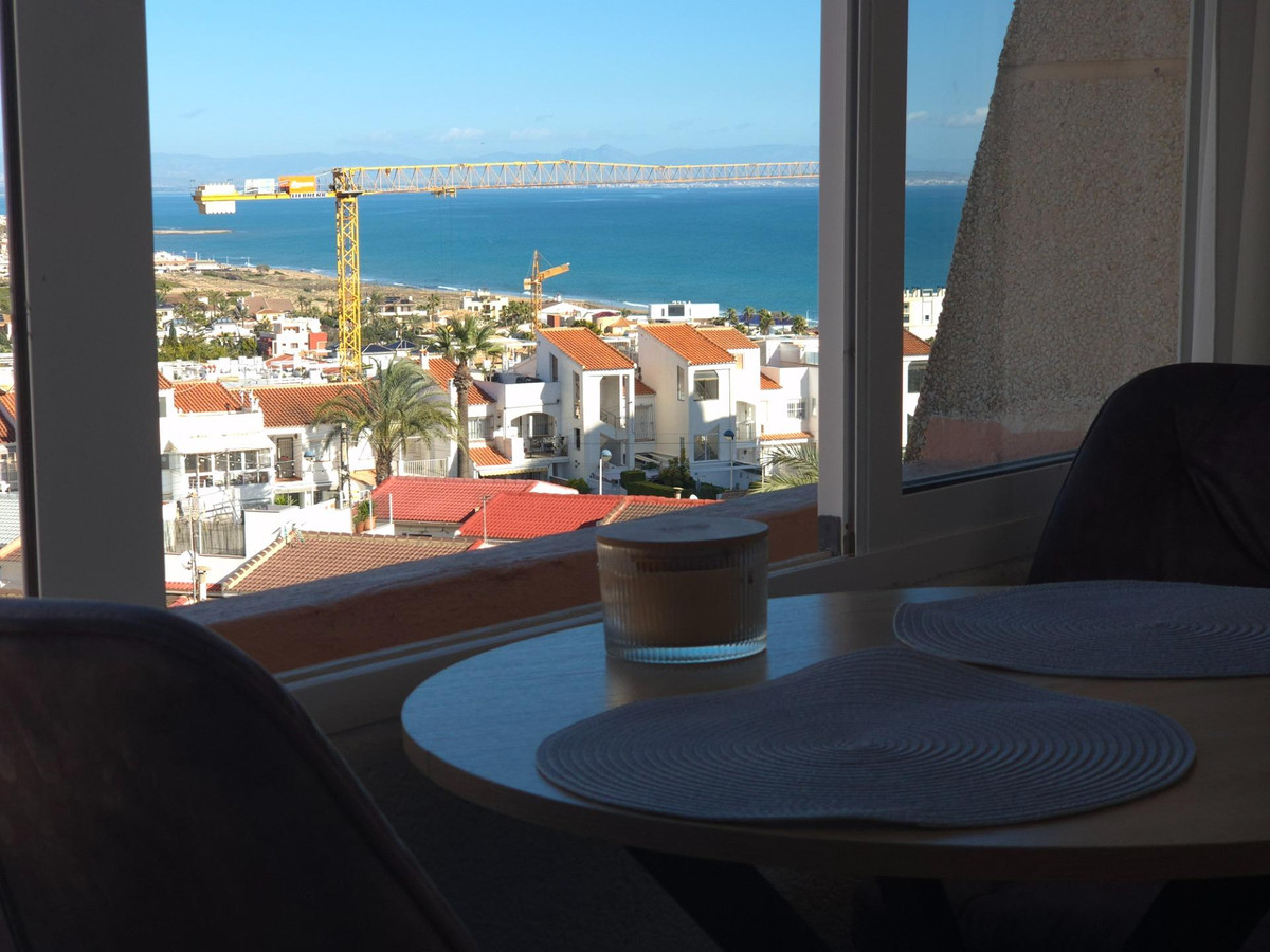 Discover this stunning duplex penthouse located in the desired Torrejón area, within the lively coastal city of Torrevieja. With a constructed area of 84 m² and a usable area of 75 m², this property is ingeniously distributed to maximize comfort and functionality of the space. Offered at an attractive selling price of just €238,000, it represents an exceptional opportunity for both residence and investment. Its southeast orientation ensures abundant natural light throughout the day and is just 400 meters from the sea.The home consists of two bedrooms (one double), designed with attention to detail to provide optimal rest; additionally, it has a full bathroom along with an additional toilet perfect for guests. The private terrace is ideal for relaxing while enjoying unparalleled panoramic views that include majestic natural landscapes.Among its additional services, highlights include direct access to a perfect community pool to cool off on hot days, as well as a very practical private storage room.The surroundings stand out for being spacious and bright due to its exterior design located within a quiet residential complex surrounded by leafy trees providing natural freshness, with easy access to public transport allowing quick connections to local shopping areas generating daily convenience. Additionally, it is close to schools, which is favorable for families seeking optimal education without neglecting commuting time. Along with these advantages, impressive open views of the sea, mountains, and Spanish nature create a bright and relaxing atmosphere, where you can enjoy beautiful sunrises and sunsets every day! The apartment offers interesting possibilities to modify the distribution of windows, potentially adding new windows and converting two bedrooms into three complete ones, undoubtedly an excellent option for comfortable living or investment increasing value after renovation.